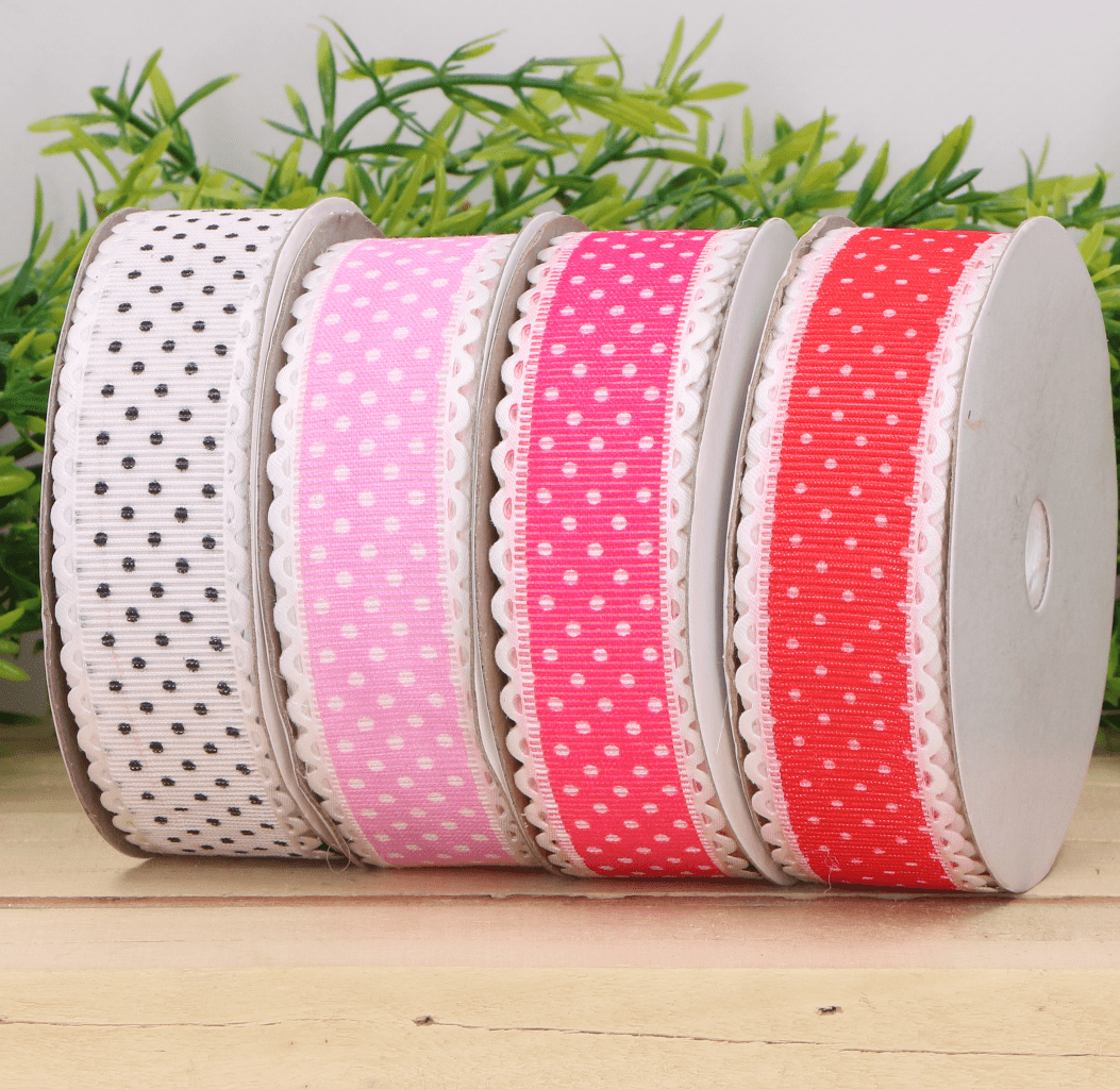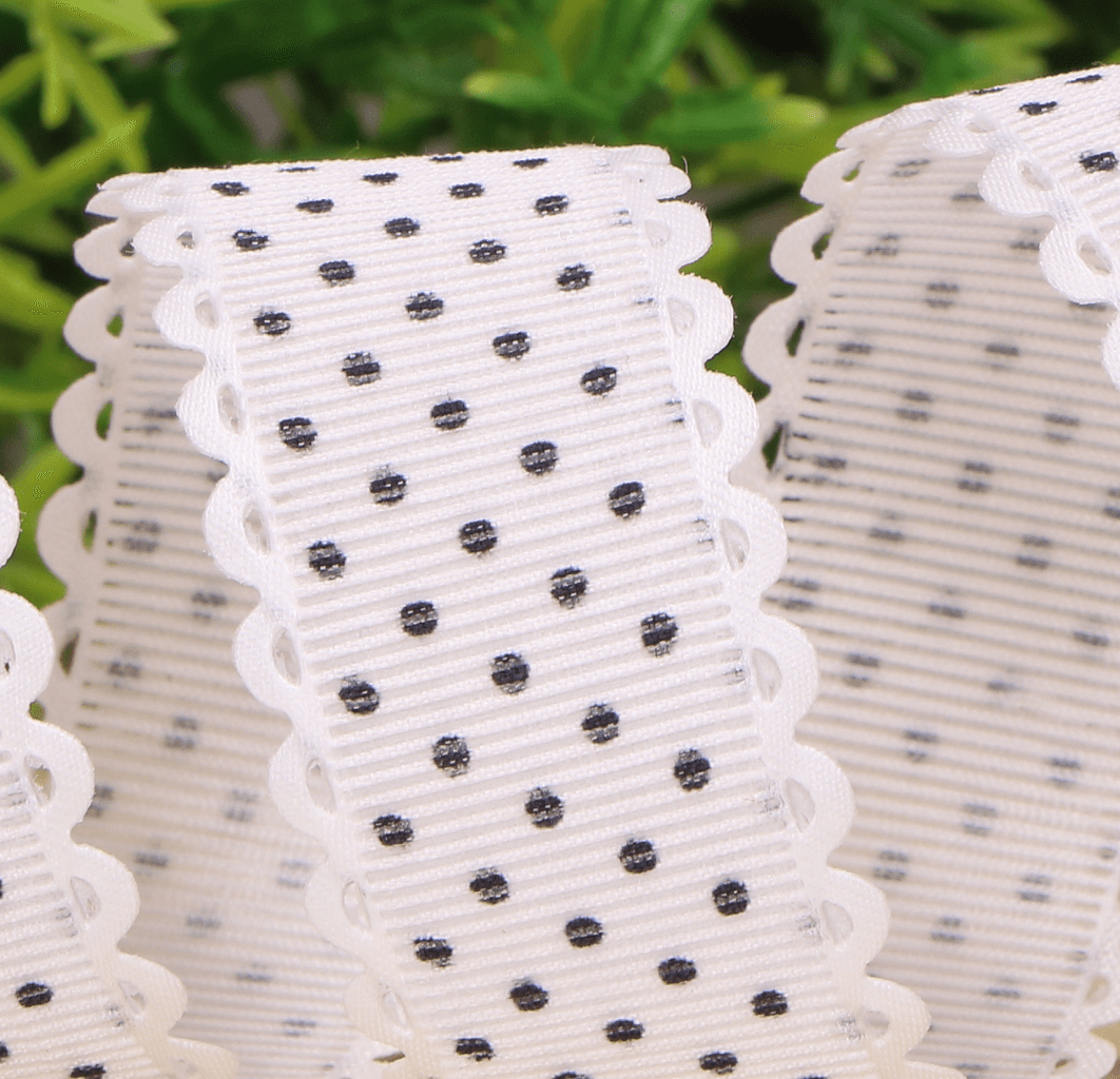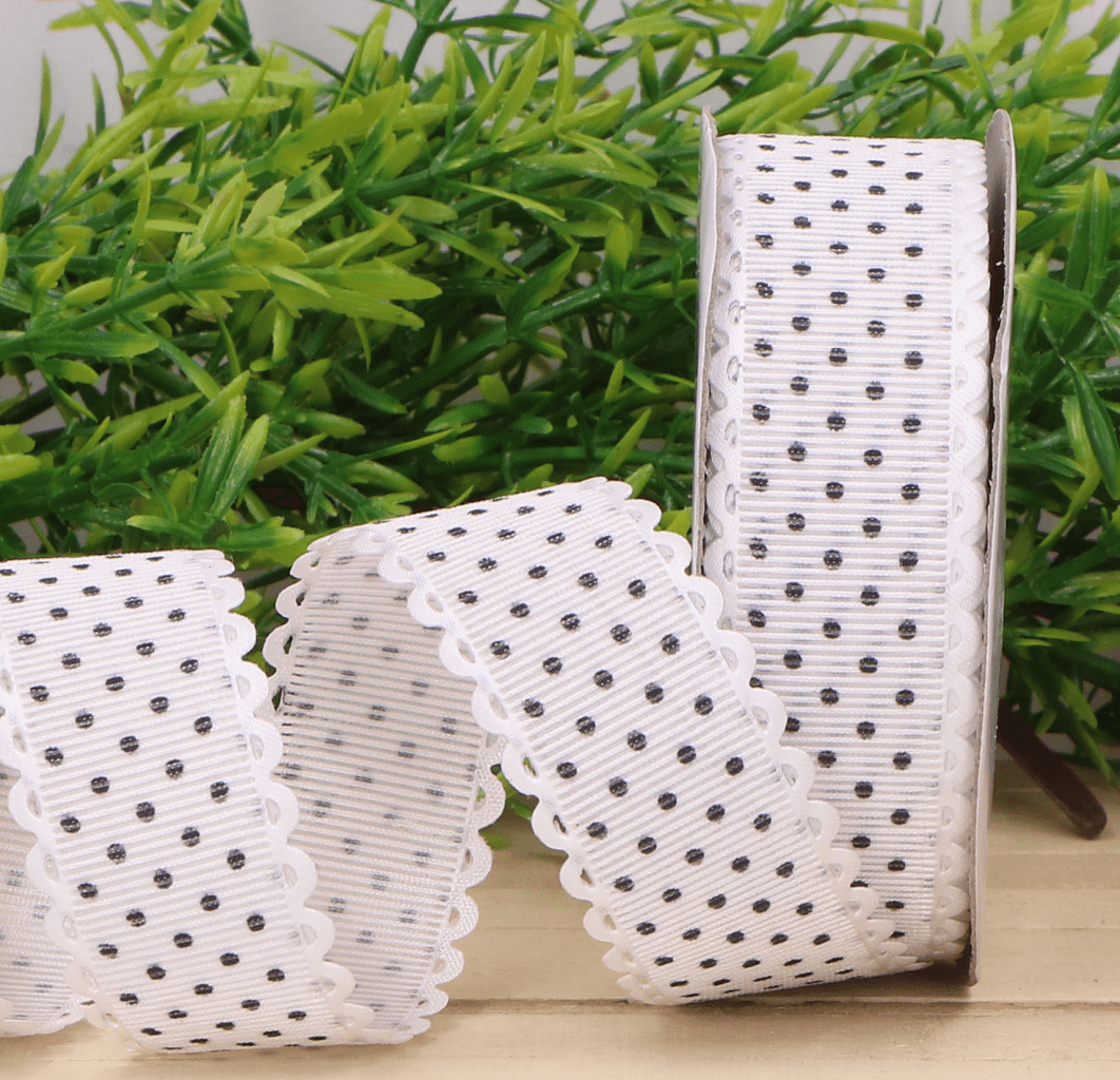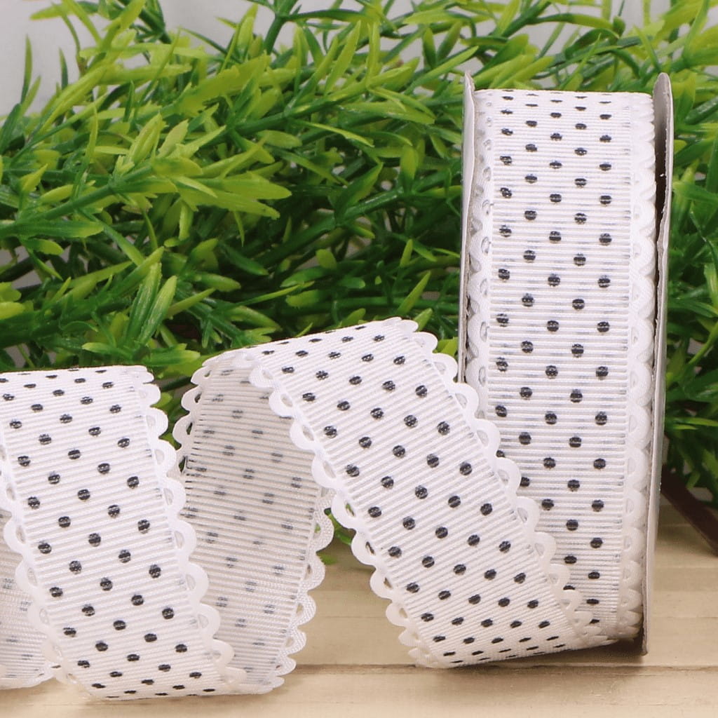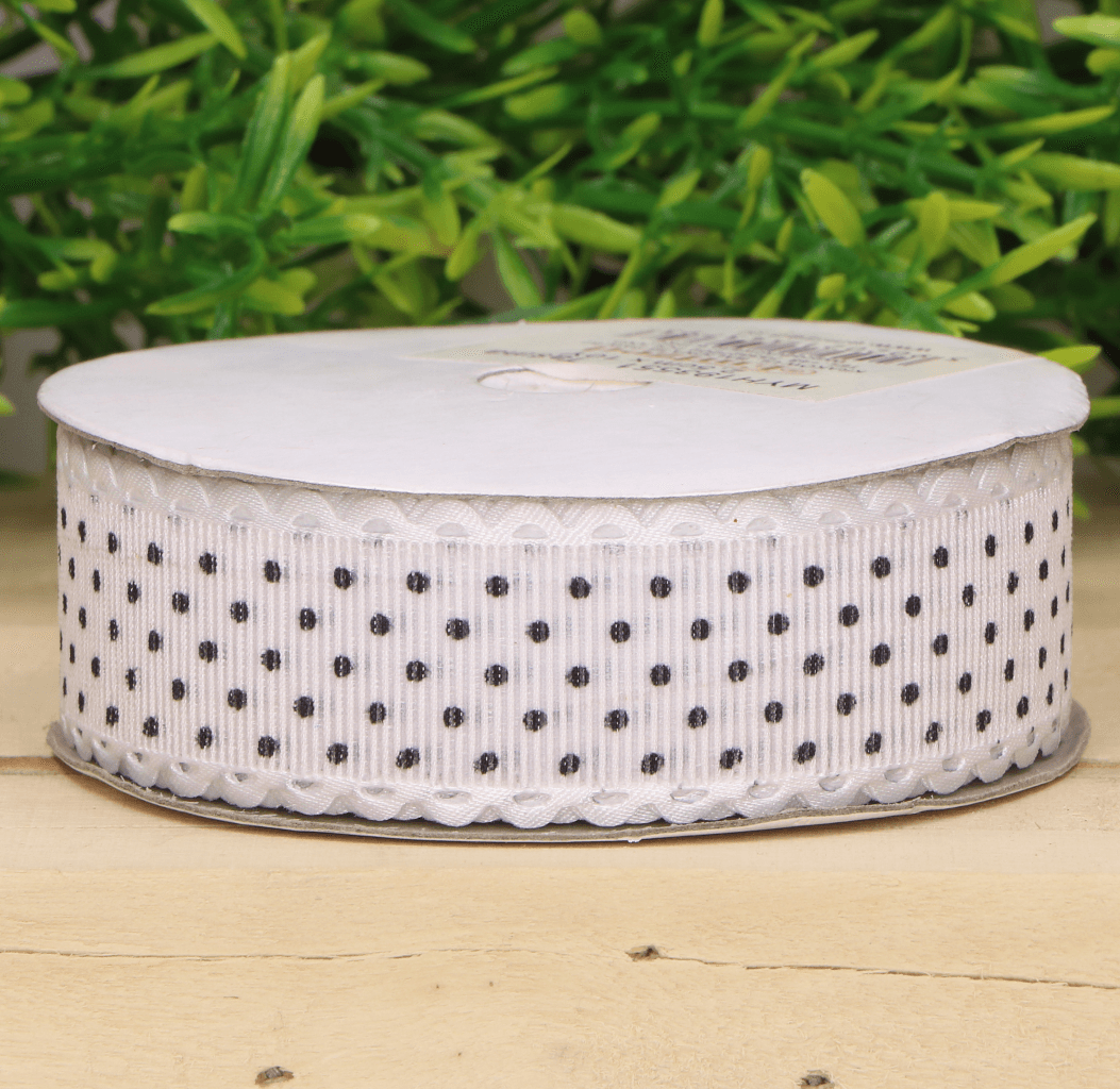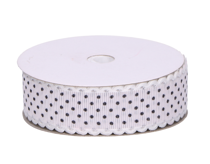 Wstążka w kropki biała 2,5cm 9m