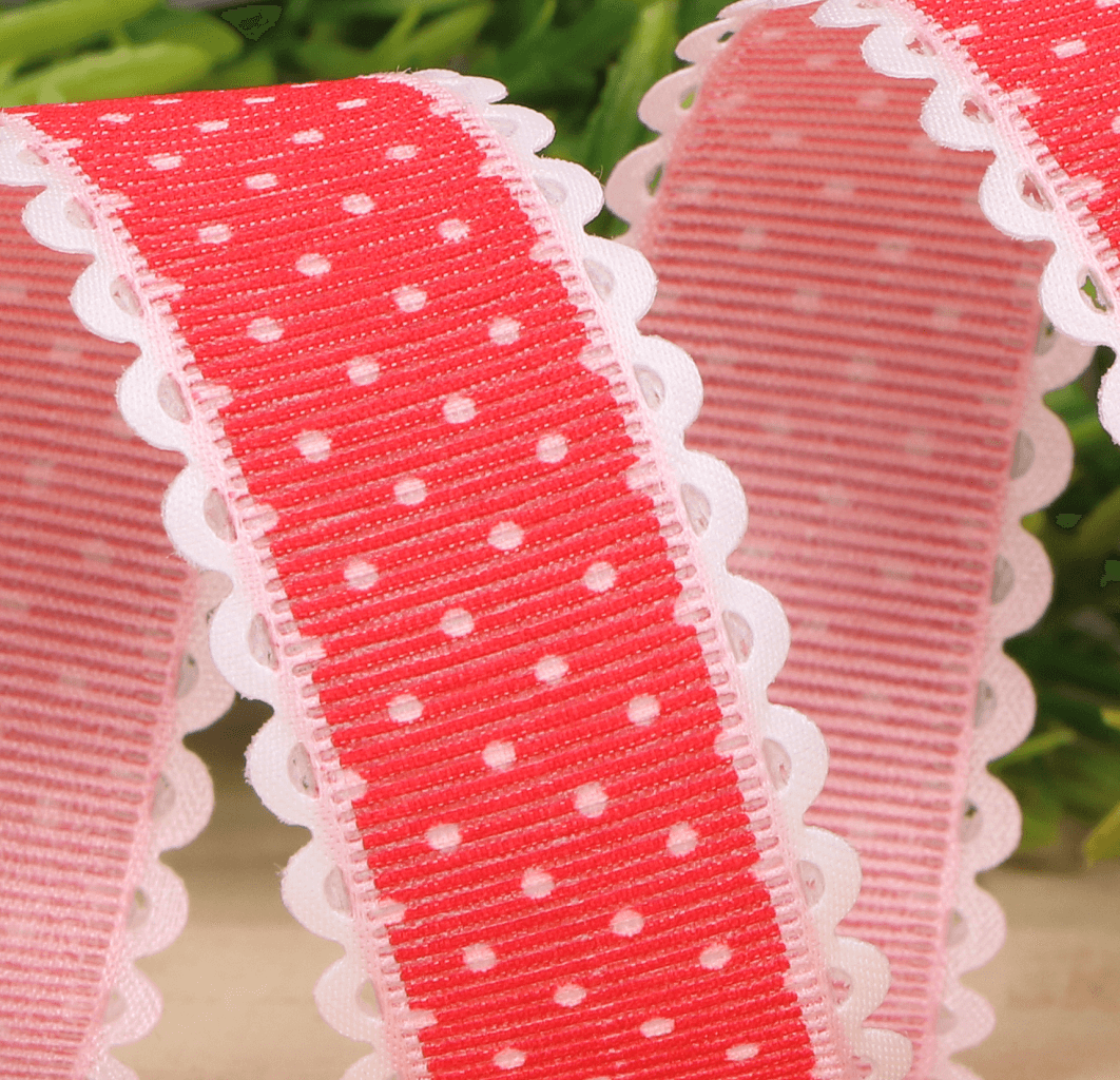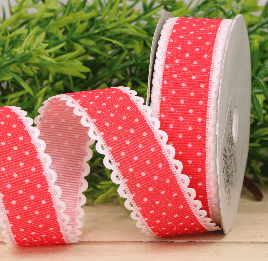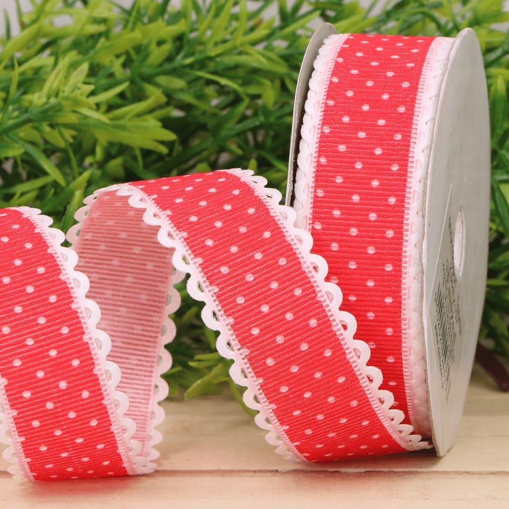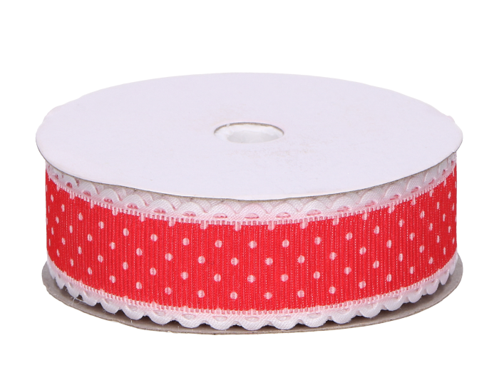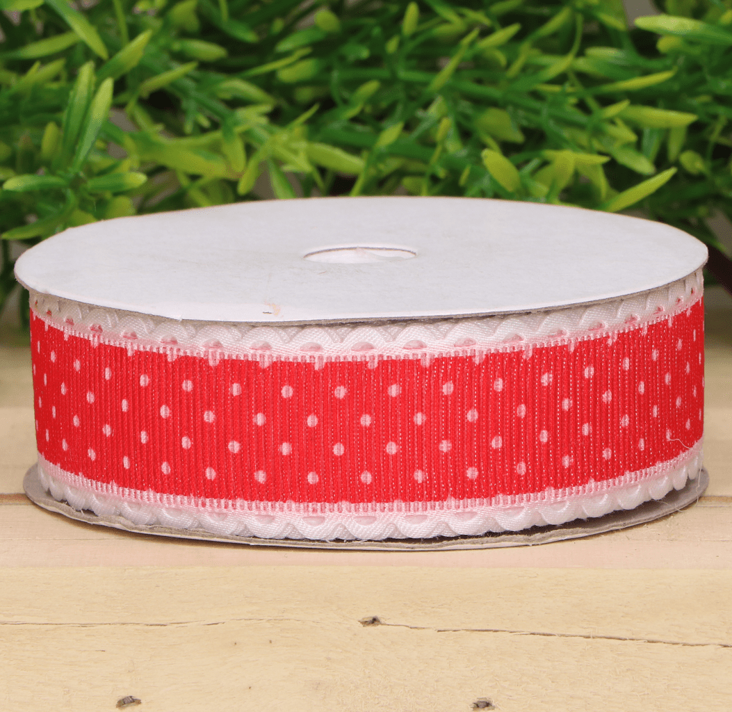 Wstążka w kropki czerwona 2,5cm 9m