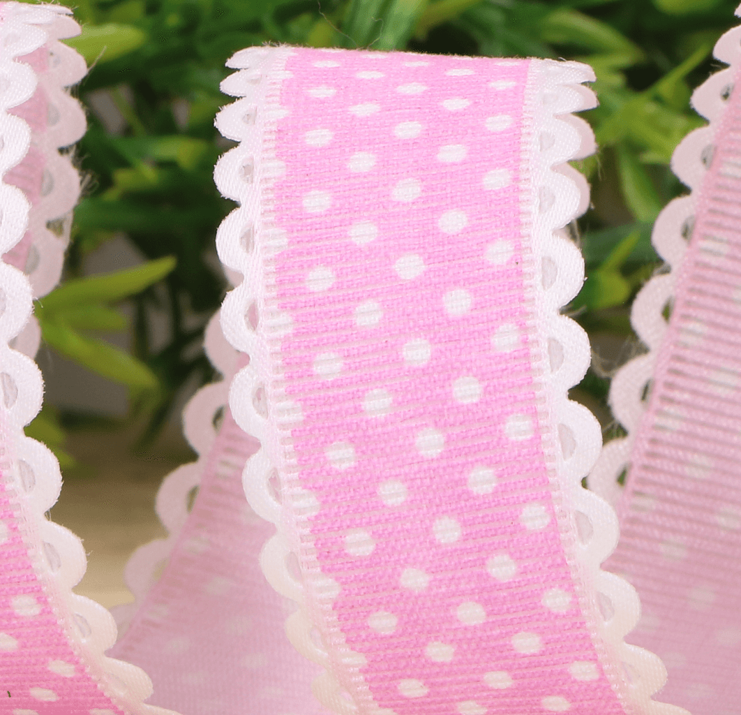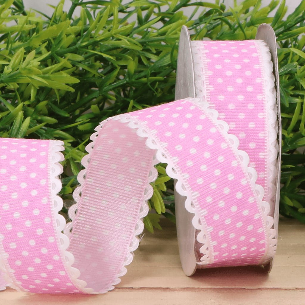 Wstążka w kropki jasny różowy 2,5cm 9m