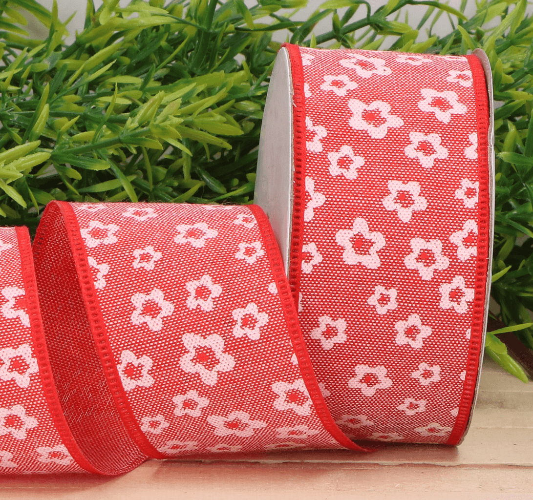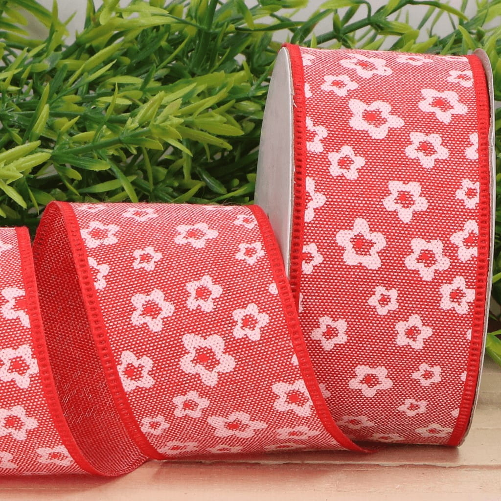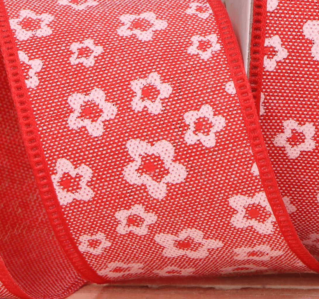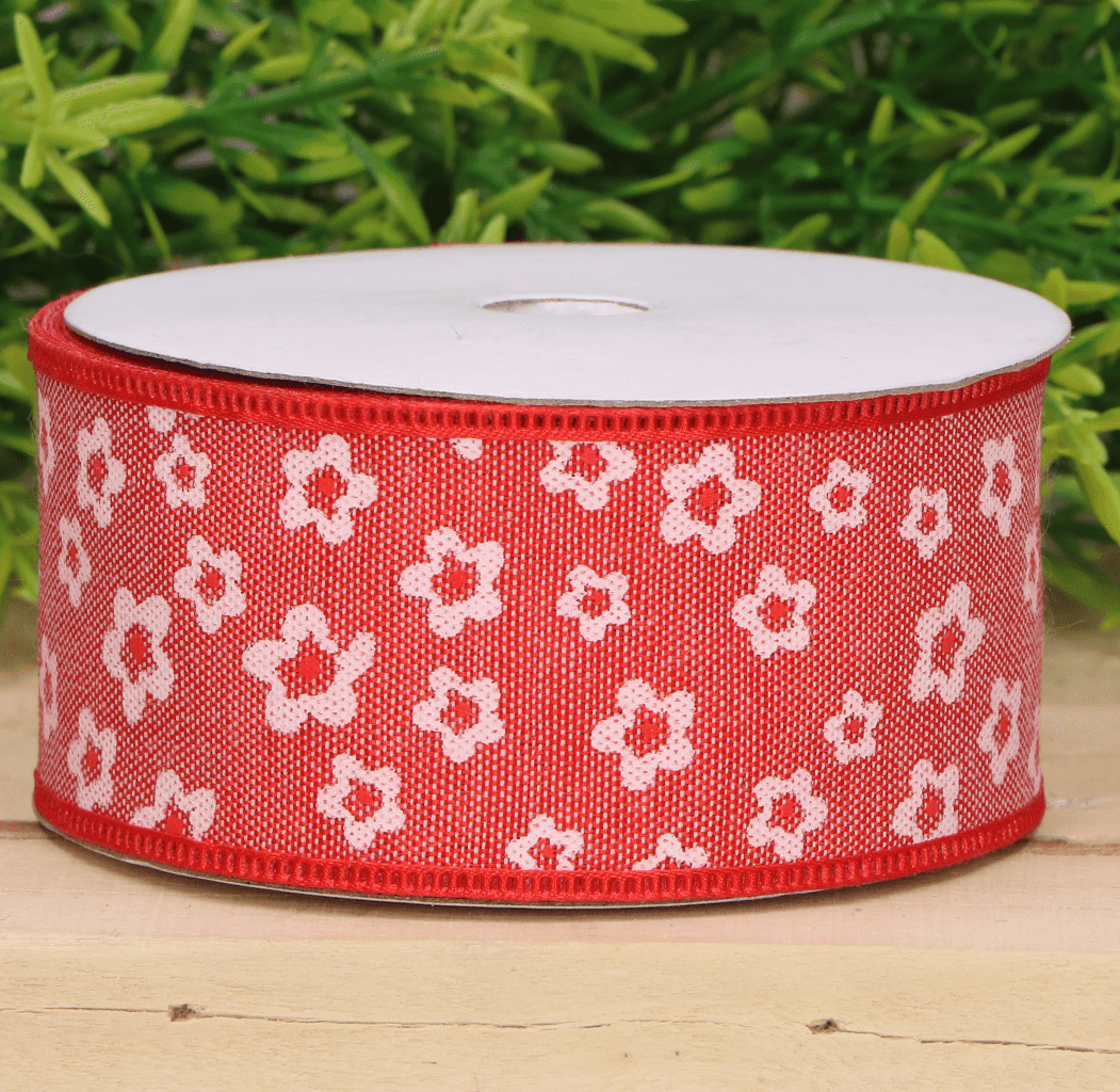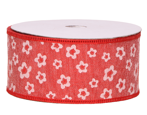 Wstążka w kwiaty czerwona 3,8cm 9m