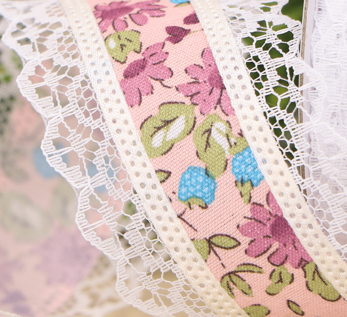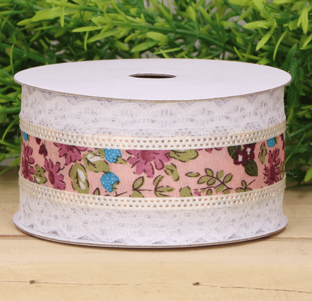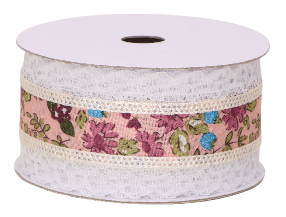 Wstążka z koronką w kwiaty 4cm