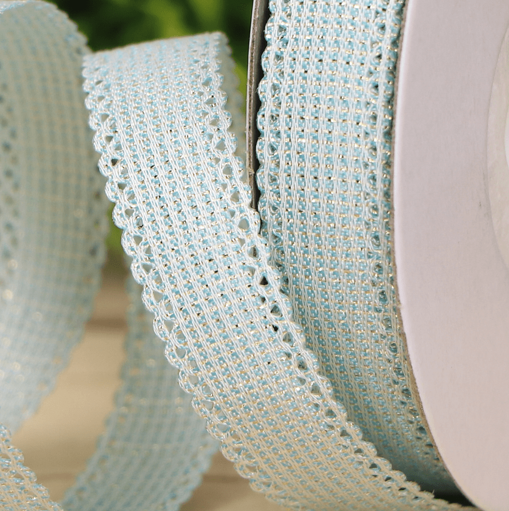 Wstążka z lekkim połyskiem błękitna