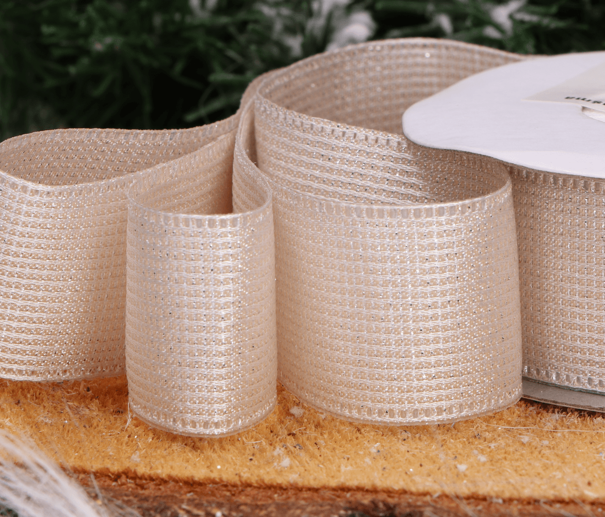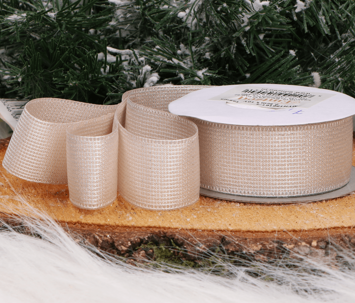 Wstążka z lekkim połyskiem kremowa