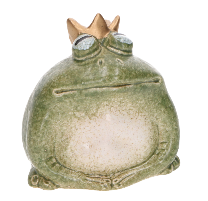 Żabka w koronie (zamknięte oczka) ceramiczna, zielona (mat) 6,3*4,4*5,9cm