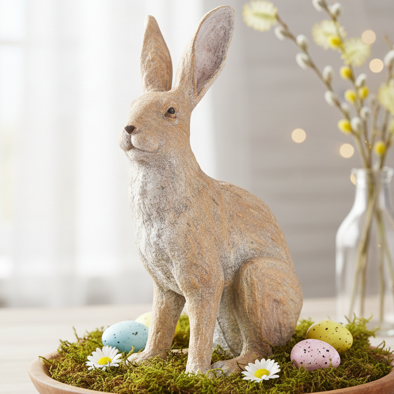 Ten realistyczny zając siedzący to piękna dekoracja, która wprowadzi naturalny akcent do Twojego domu lub ogrodu. Wykonany z wysokiej jakości poliresingu, jest odporny na warunki atmosferyczne, dzięki czemu świetnie sprawdzi się zarówno we wnętrzach, jak i na zewnątrz. Jego naturalna kolorystyka oraz precyzyjne detale sprawiają, że wygląda niezwykle realistycznie, dodając uroku każdej aranżacji. Elegancka sylwetka i delikatne rzeźbienia podkreślają wyjątkowy charakter figurki, czyniąc ją idealnym dodatkiem do ogrodu, tarasu czy balkonu. To także doskonały pomysł na prezent dla miłośników natury i oryginalnych dekoracji.