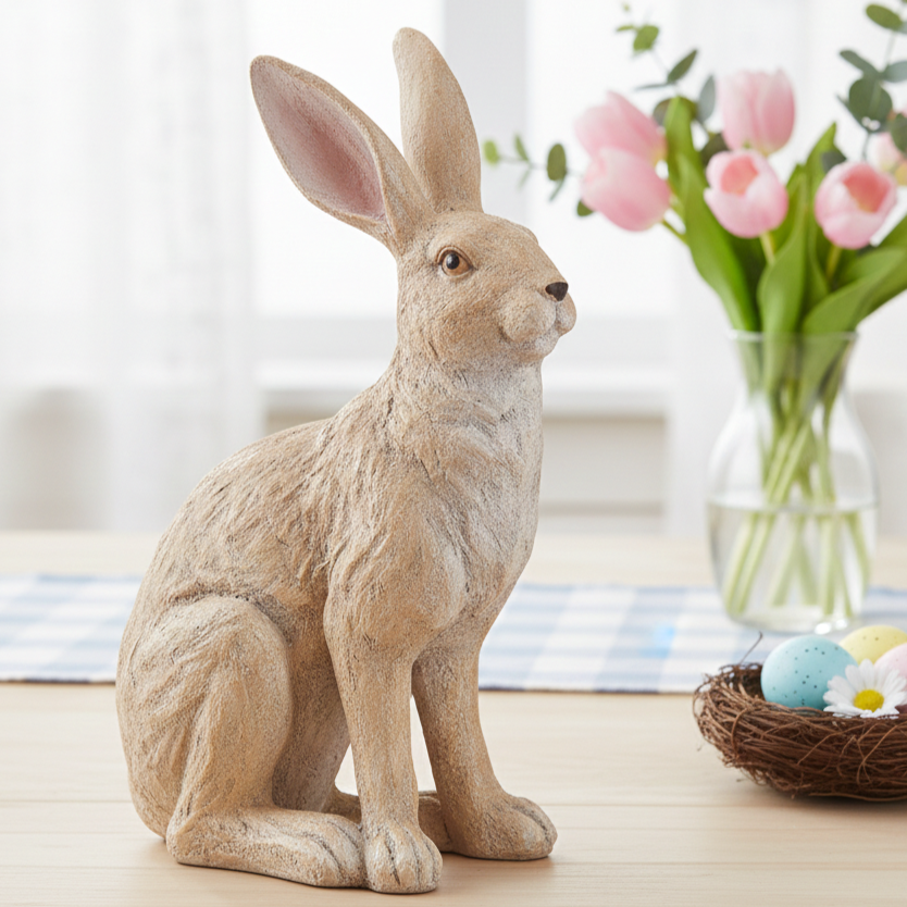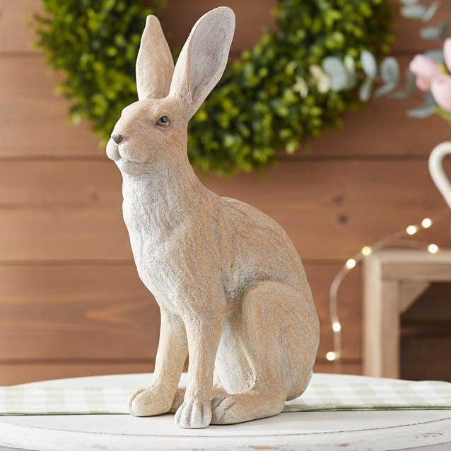 Zając siedzący w naturalnych kolorach (poliresing) 14x25x38 cm