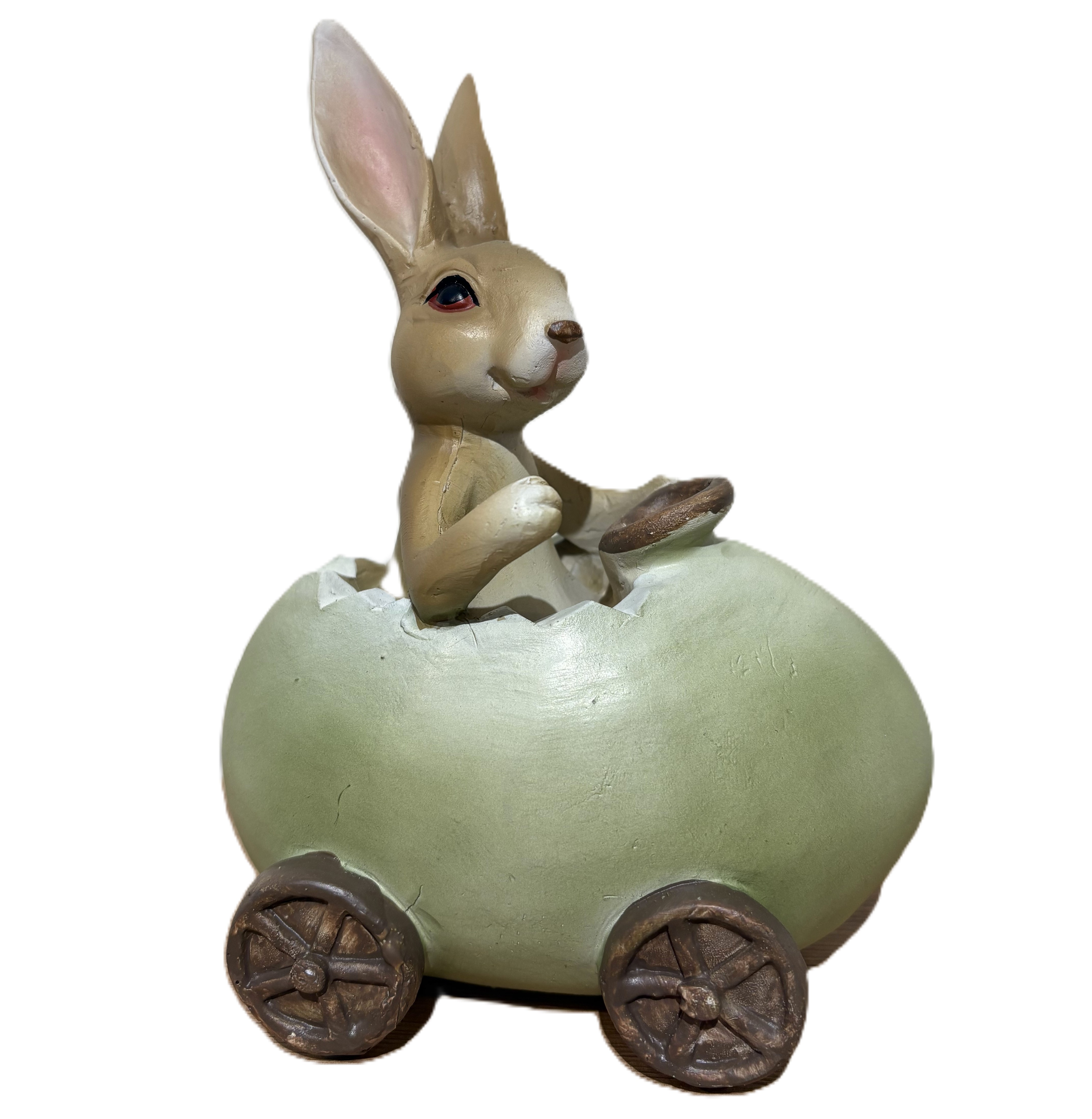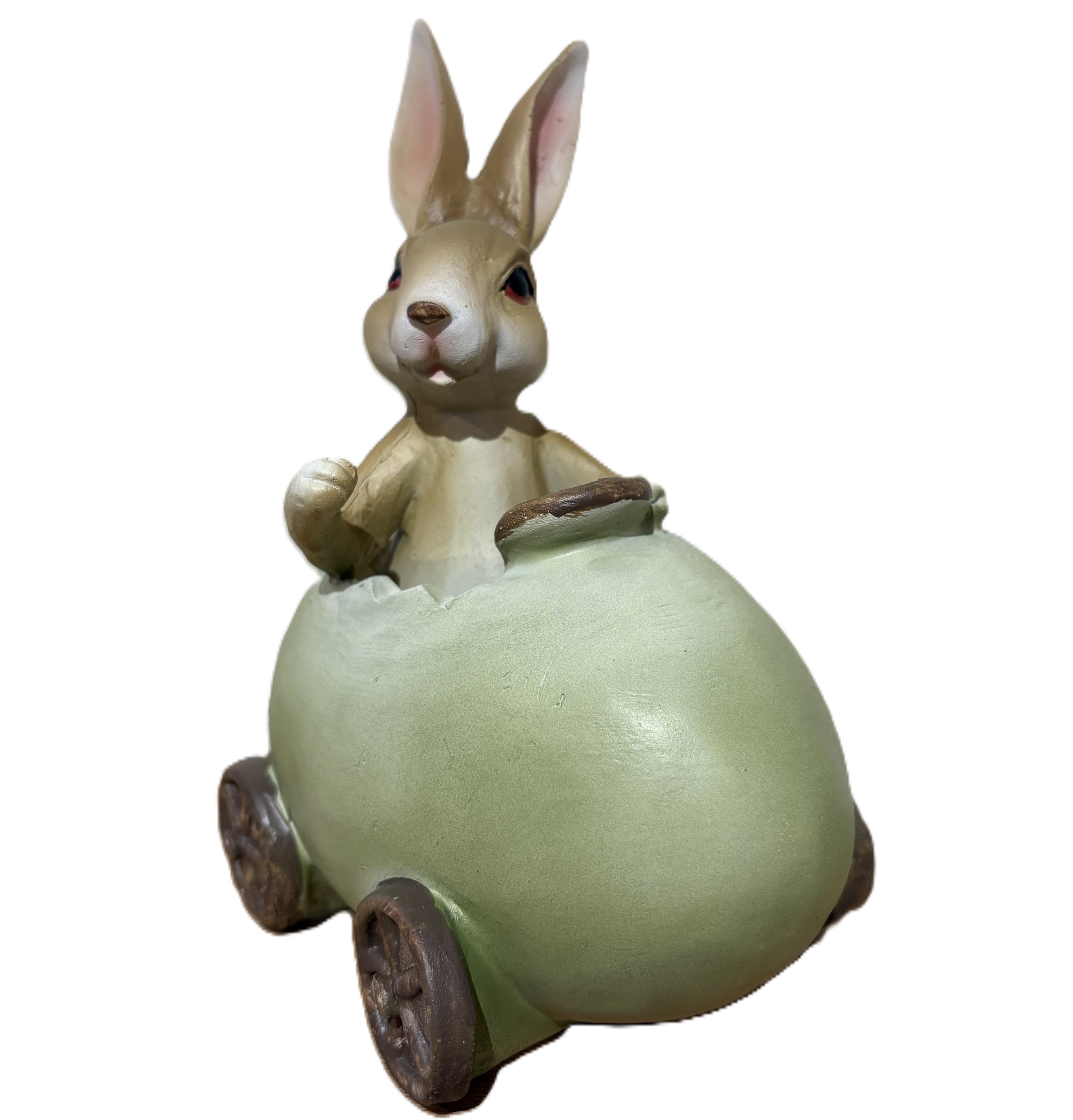 Zając w "Jajkowym" samochodziku (poliresing) 15,5*12*20 cm
