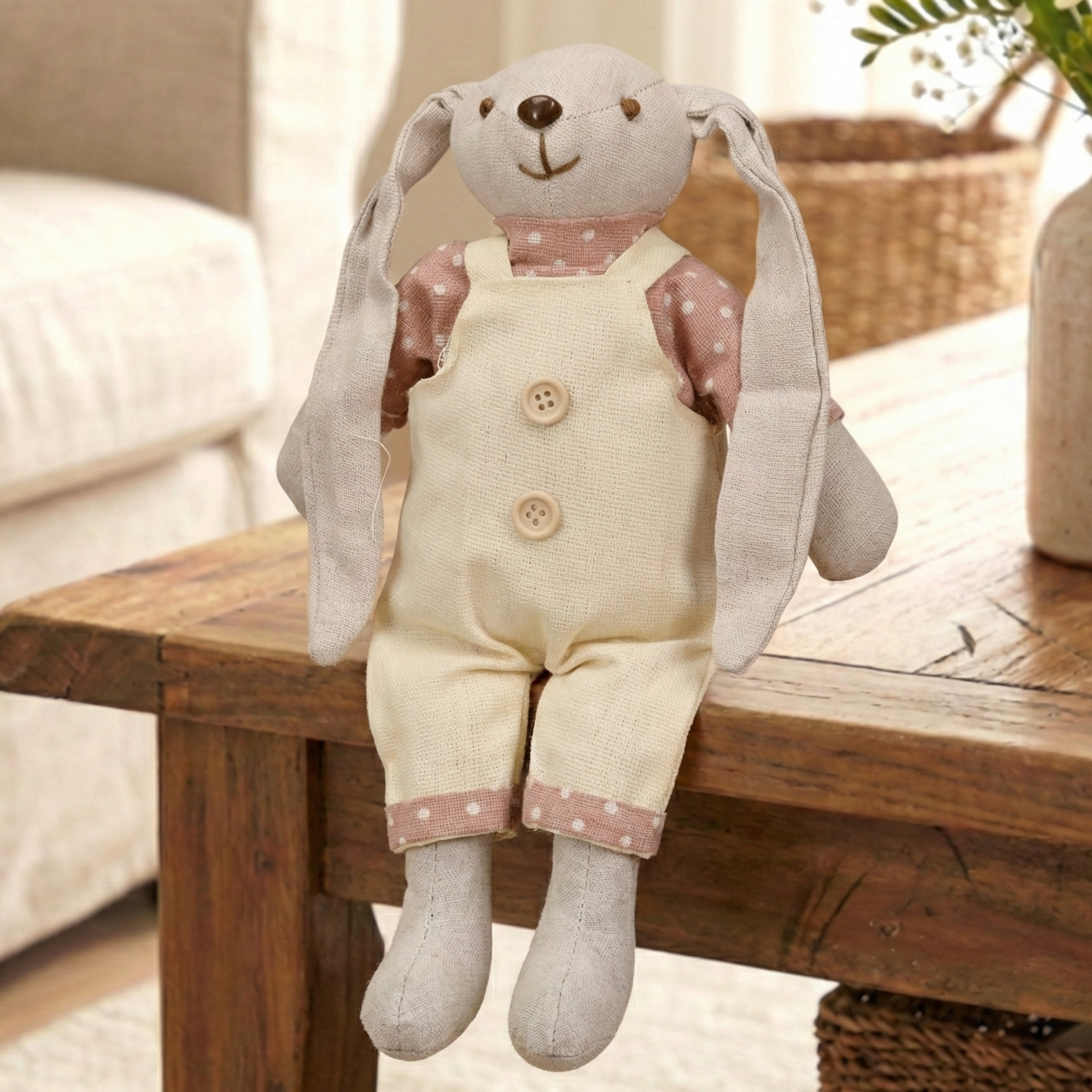 Poznaj uroczego Królika Wielkanocnego, który stanie się sercem wiosennych dekoracji w Twoim domu. Ten starannie wykonany króliczek o wysokiej jakości nosi urocze ogrodniczki, co nadaje mu wyjątkowego charakteru. Idealny do postawienia na półce, na parapecie czy jako miła dekoracja na wielkanocnym stole.