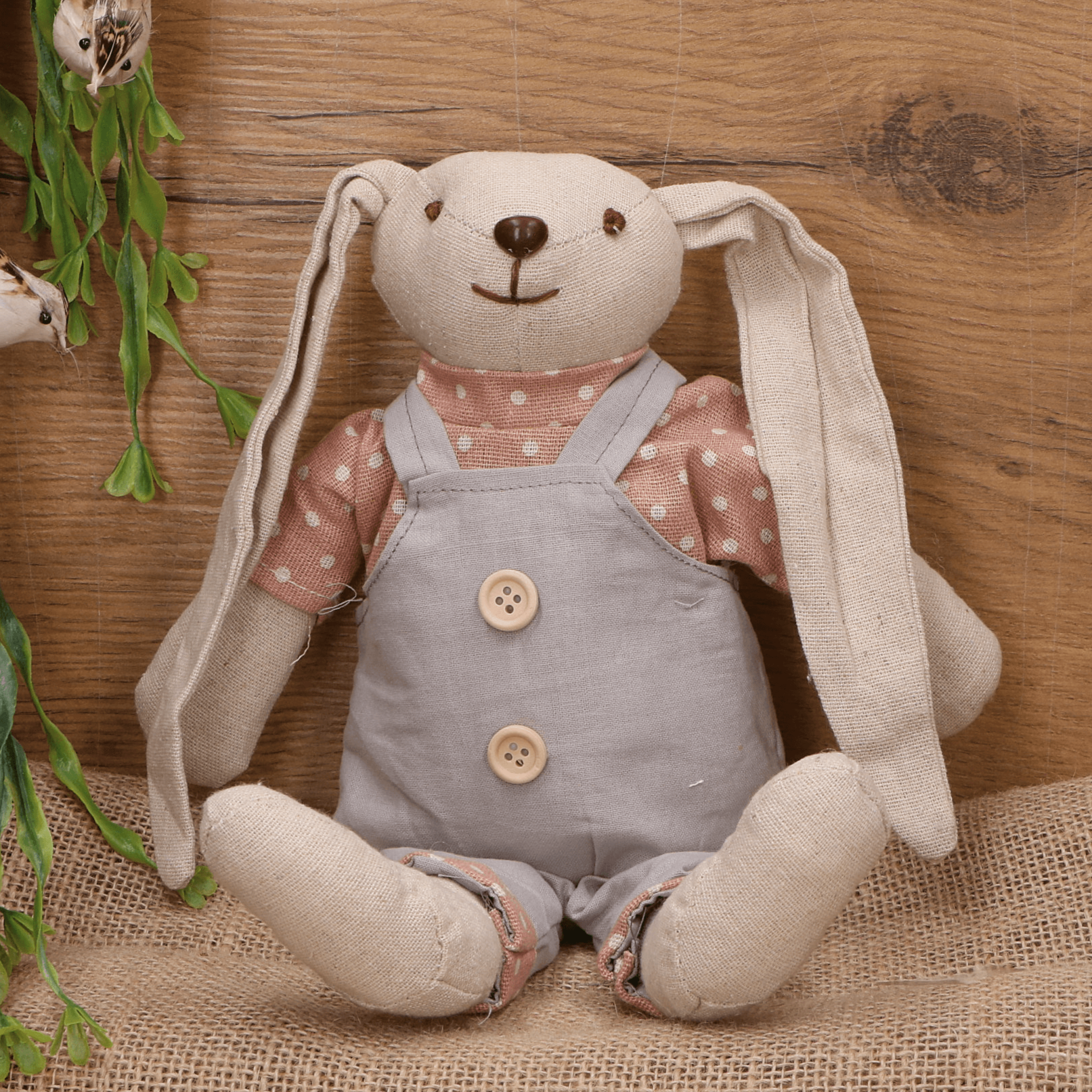 Poznaj uroczego Królika Wielkanocnego, który stanie się sercem wiosennych dekoracji w Twoim domu. Ten starannie wykonany króliczek o wysokiej jakości nosi urocze ogrodniczki, co nadaje mu wyjątkowego charakteru. Idealny do postawienia na półce, na parapecie czy jako miła dekoracja na wielkanocnym stole.
