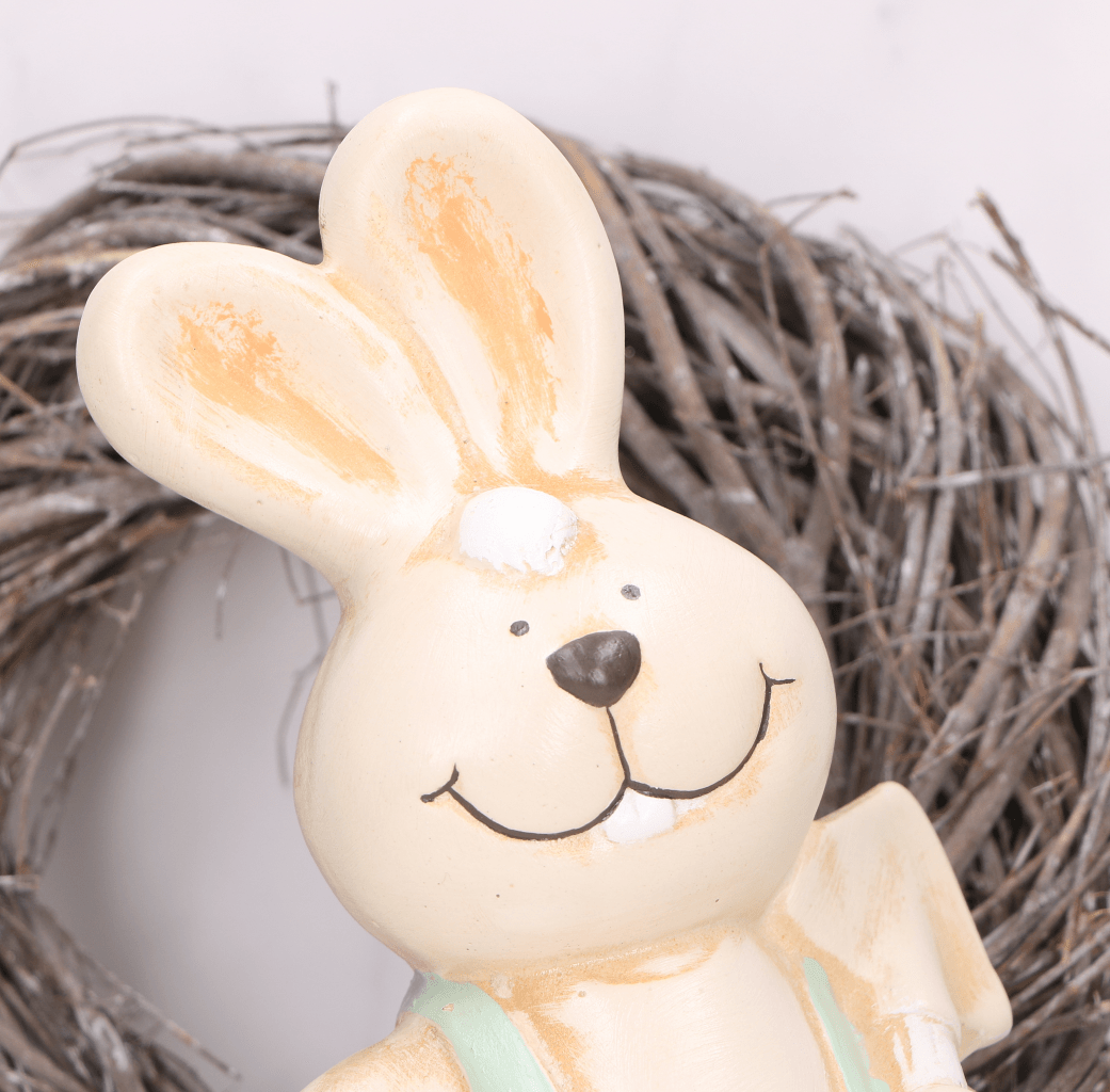 - Zajączek pięknie prezentuje się w samodzielnie, na półce czy parapecie, jak i w kompozycji z innymi ozdobami wielkanocnymi