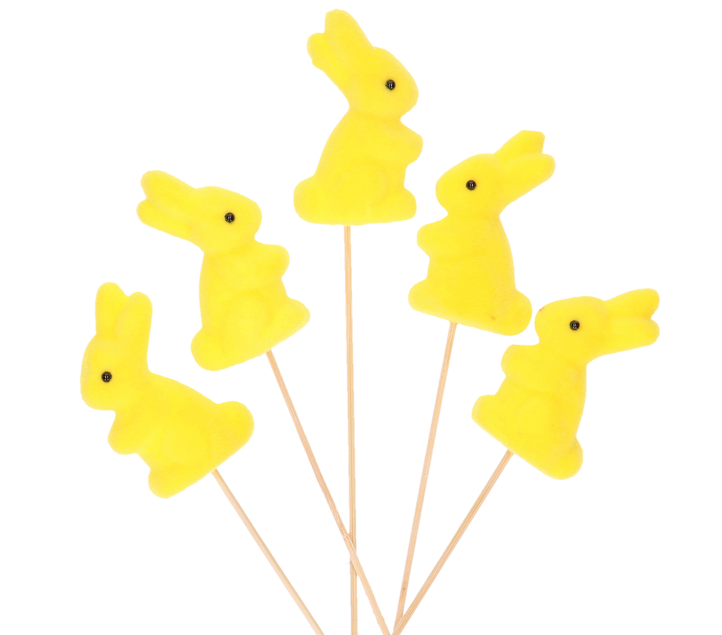 Zajączki na patyku 18 szt żółte 5x8 cm Wielkanoc