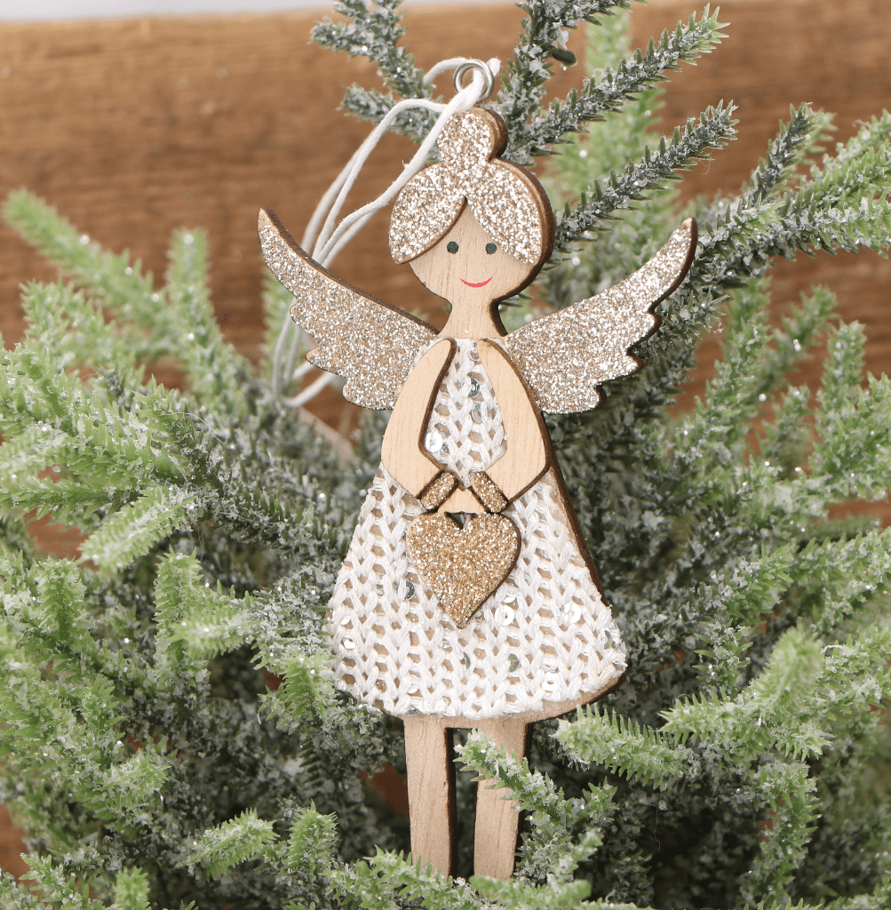 Styl rustykalny to niewątpliwie bardzo modny trend w dekoracjach świątecznych w ostatnich latach. Drewniane ozdoby są "chodliwym" produktem przez wielu osób. Aniołki do zawieszenia na choince wykonane są w nowoczesnej stylistyce. Świetnie sprawdzą się również jako podarunek dla najbliższych.