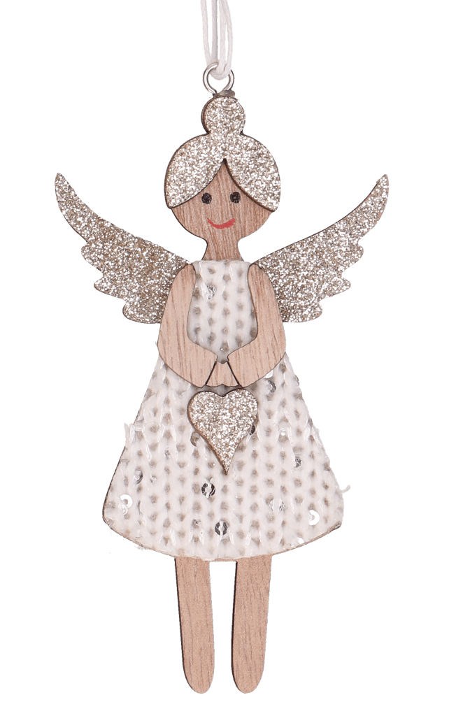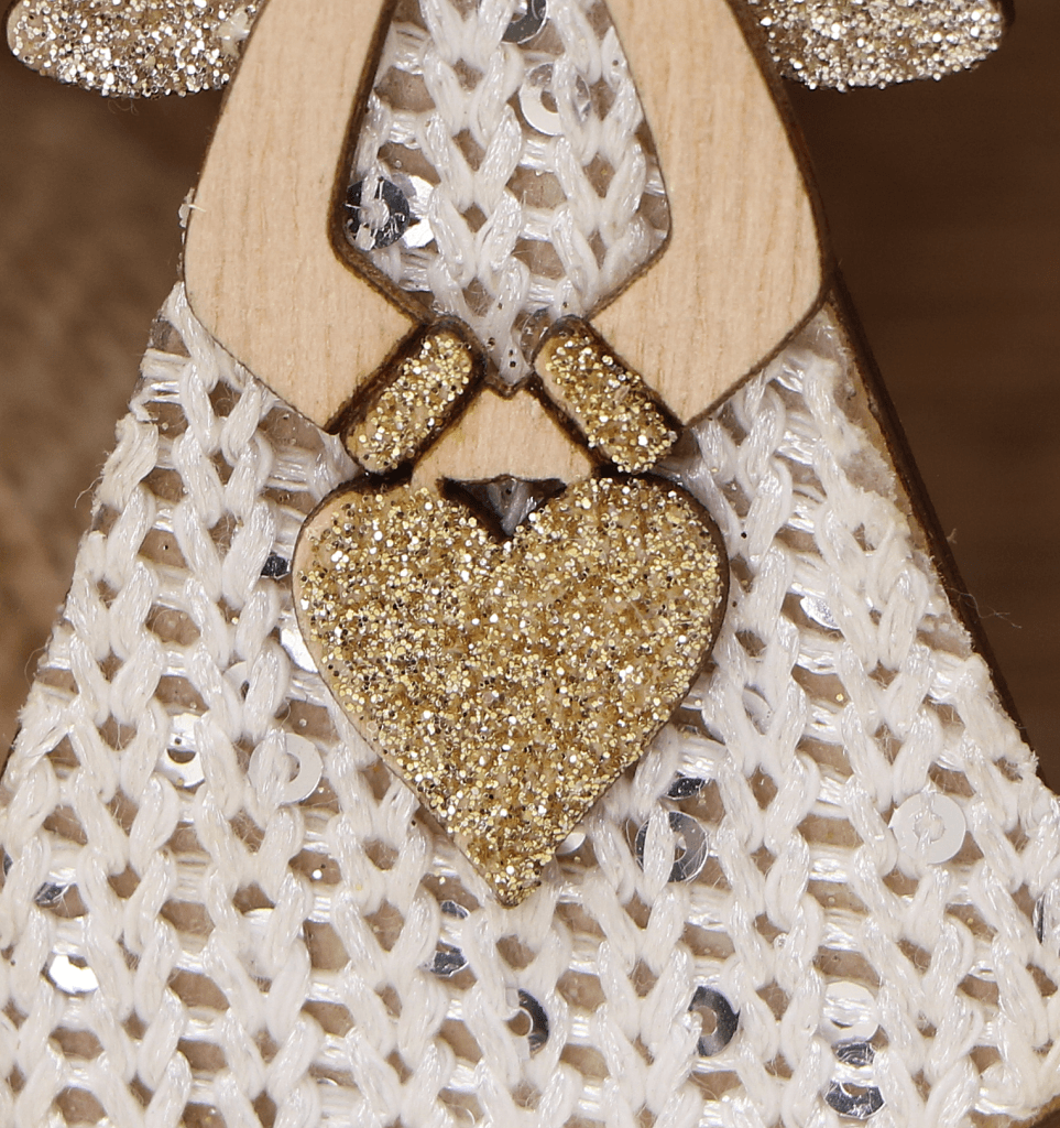Aniołek drewniany kremowy+złoto cekiny zawieszka 11cm