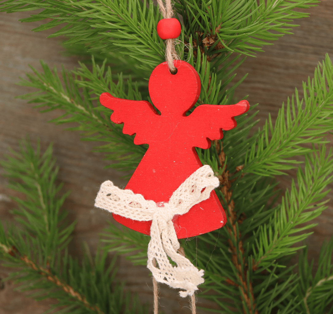 Zawieszka drewniana aniołek czerwony 21cm