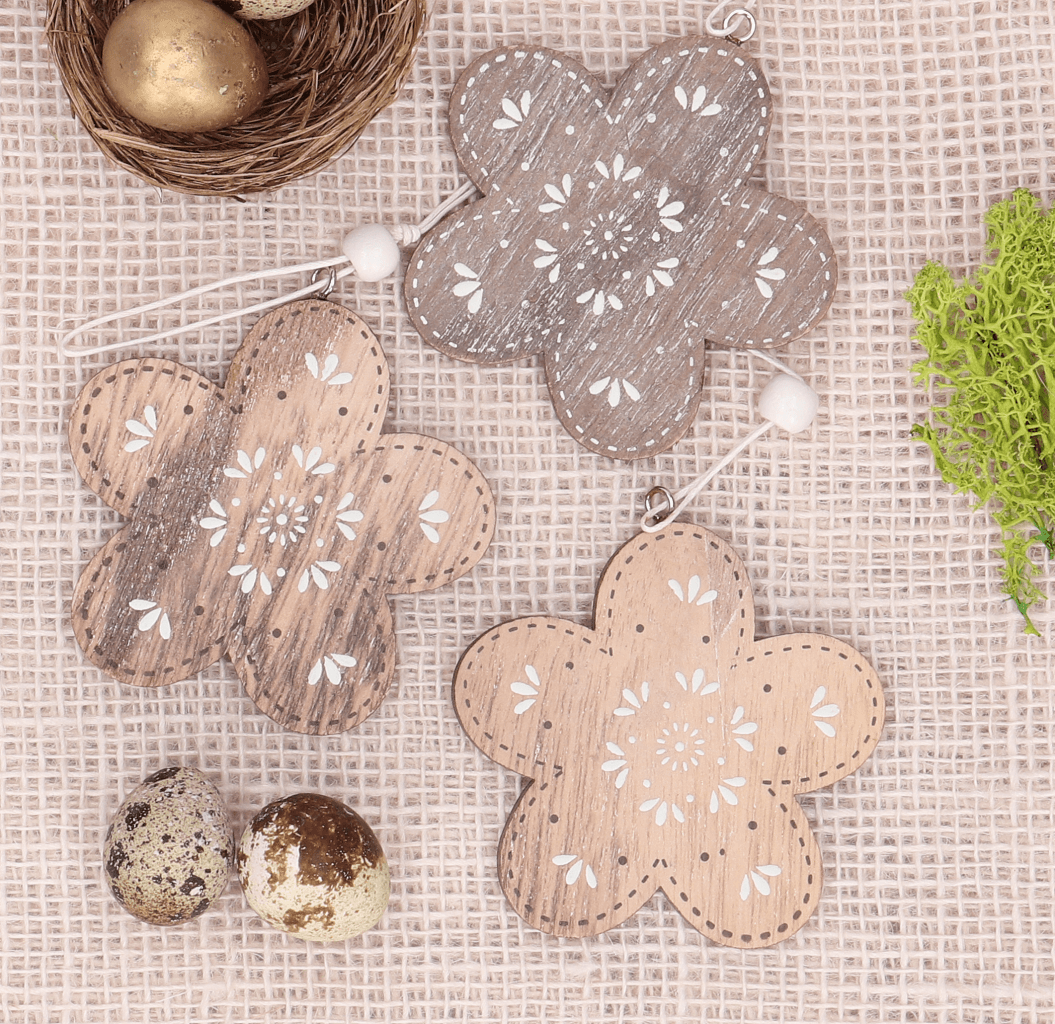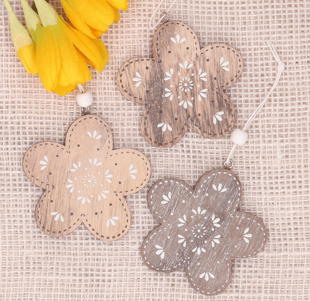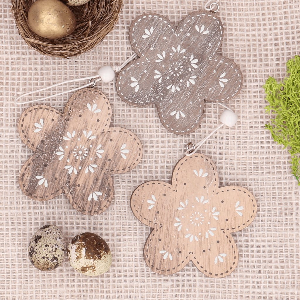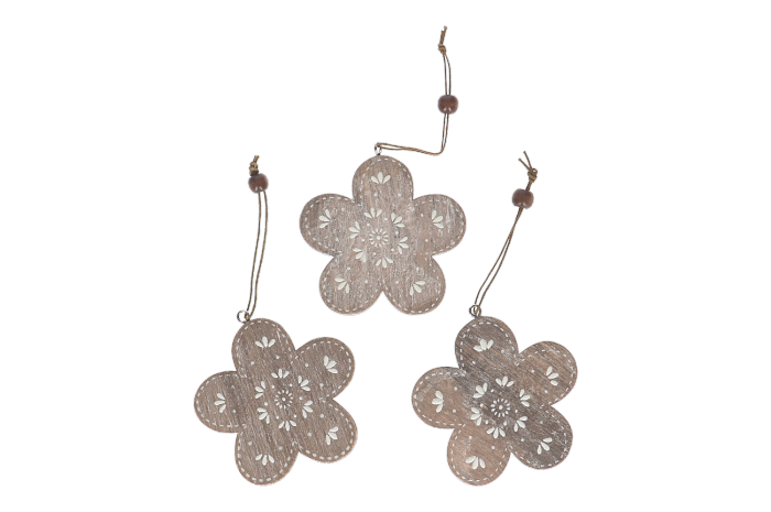 Zawieszka drewniana kwiatki naturalne 3szt