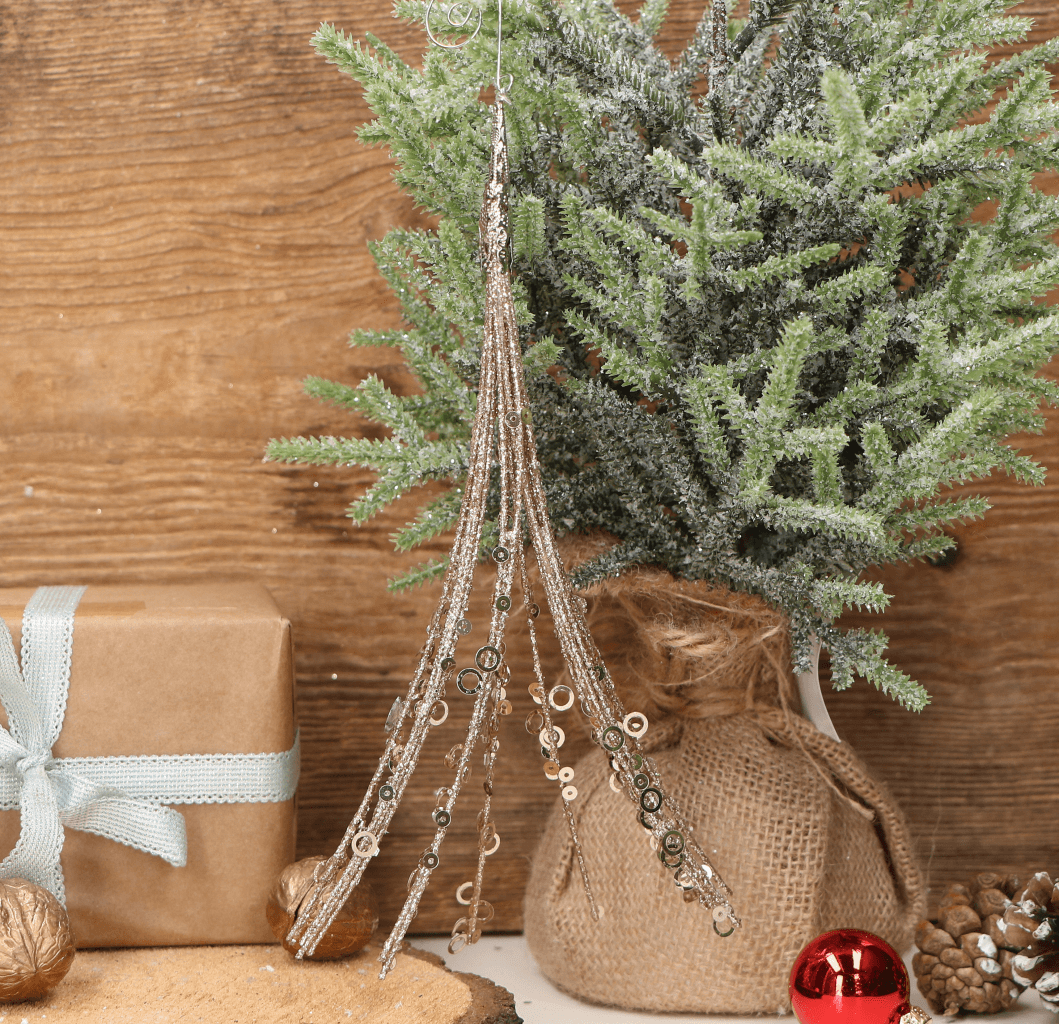 Zawieszka igiełki miotełka złota brokatowa 20cm