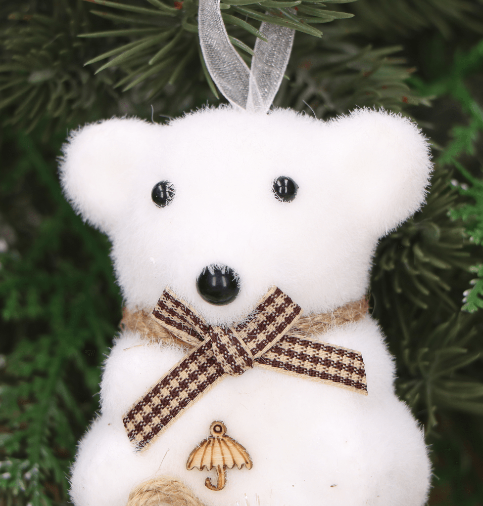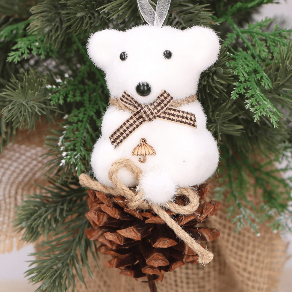 Zawieszka na choinkę biały miś duży z szyszką 1szt