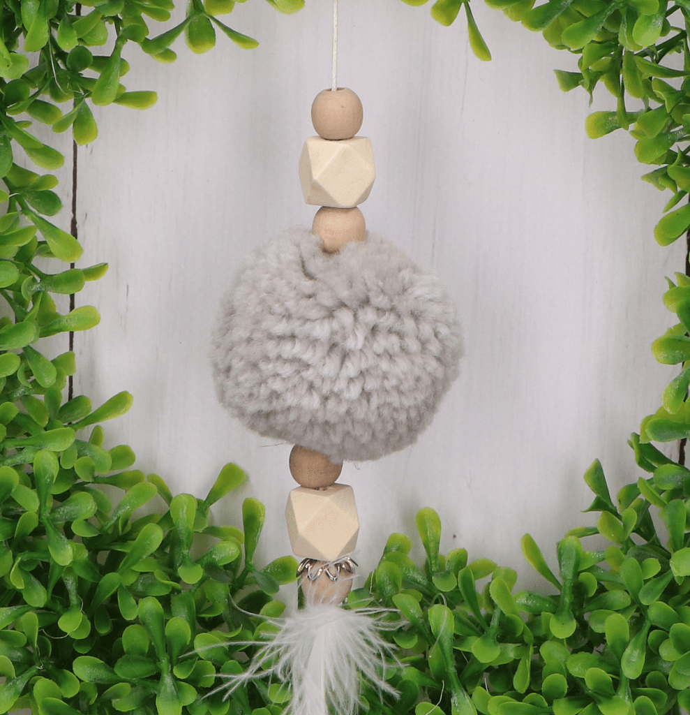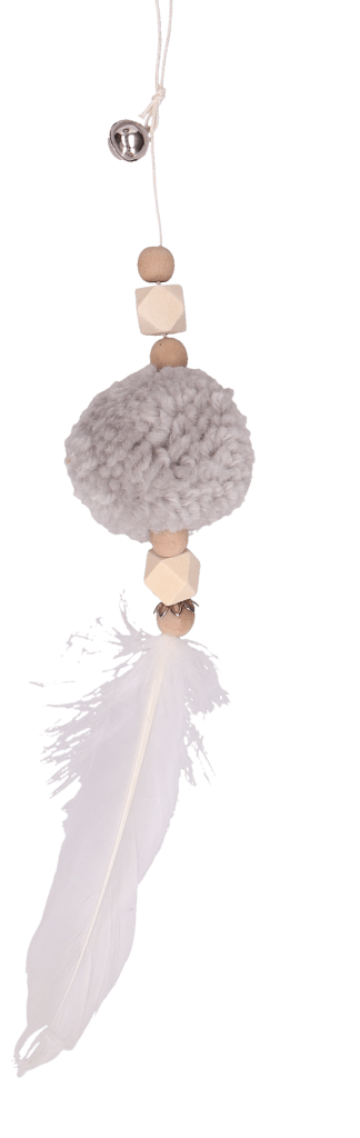 Zawieszka pompon z piórkiem szary 31cm