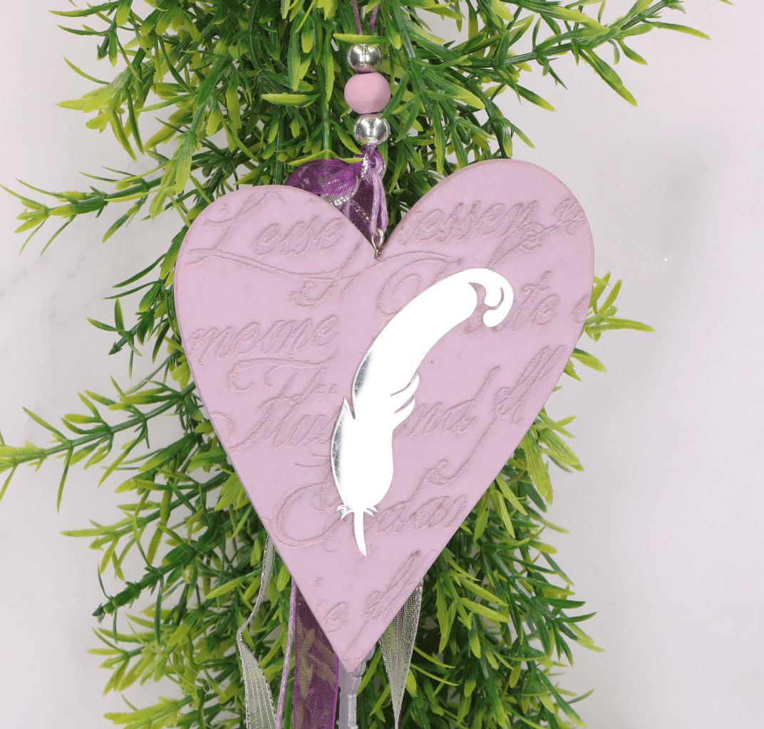 Zawieszka serce z piórkiem fiolet 1szt