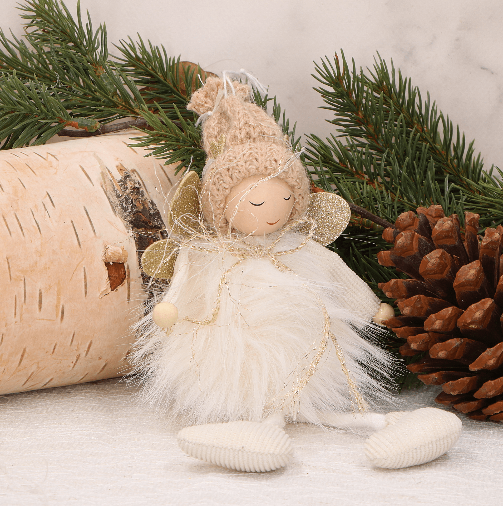 Dekoracyjna zawieszka aniołek z miękkim futerkiem