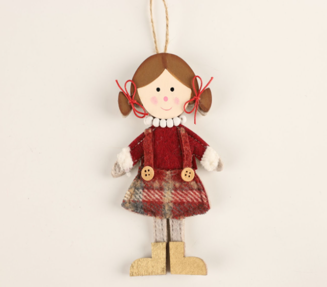 Zawieszka świąteczna dziewczynka 8.5 x 15 cm – dekoracja z drewna i tkaniny