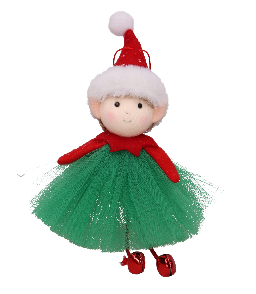 Zawieszka świąteczna elf dziewczynka z dzwoneczkami czerwony 19 cm