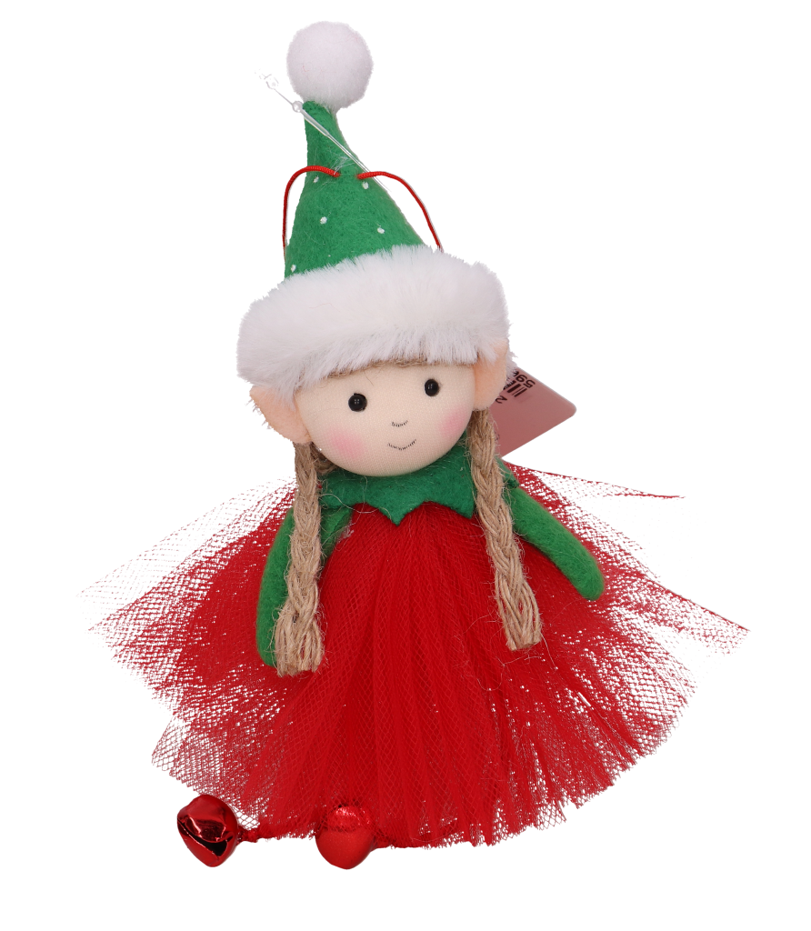 Zawieszka świąteczna elf dziewczynka z dzwoneczkami czerwony 19 cm