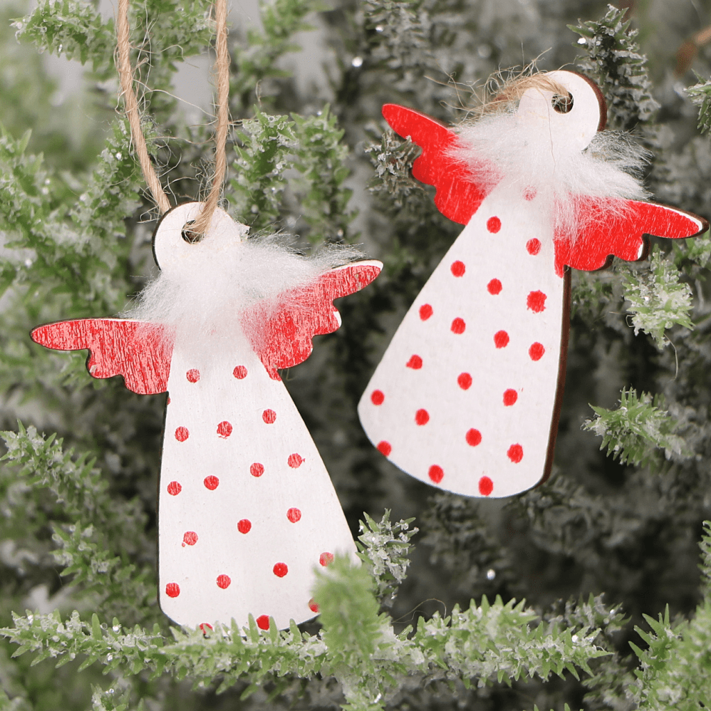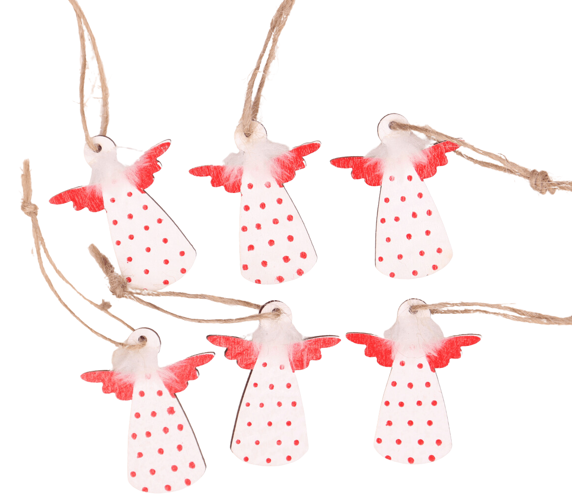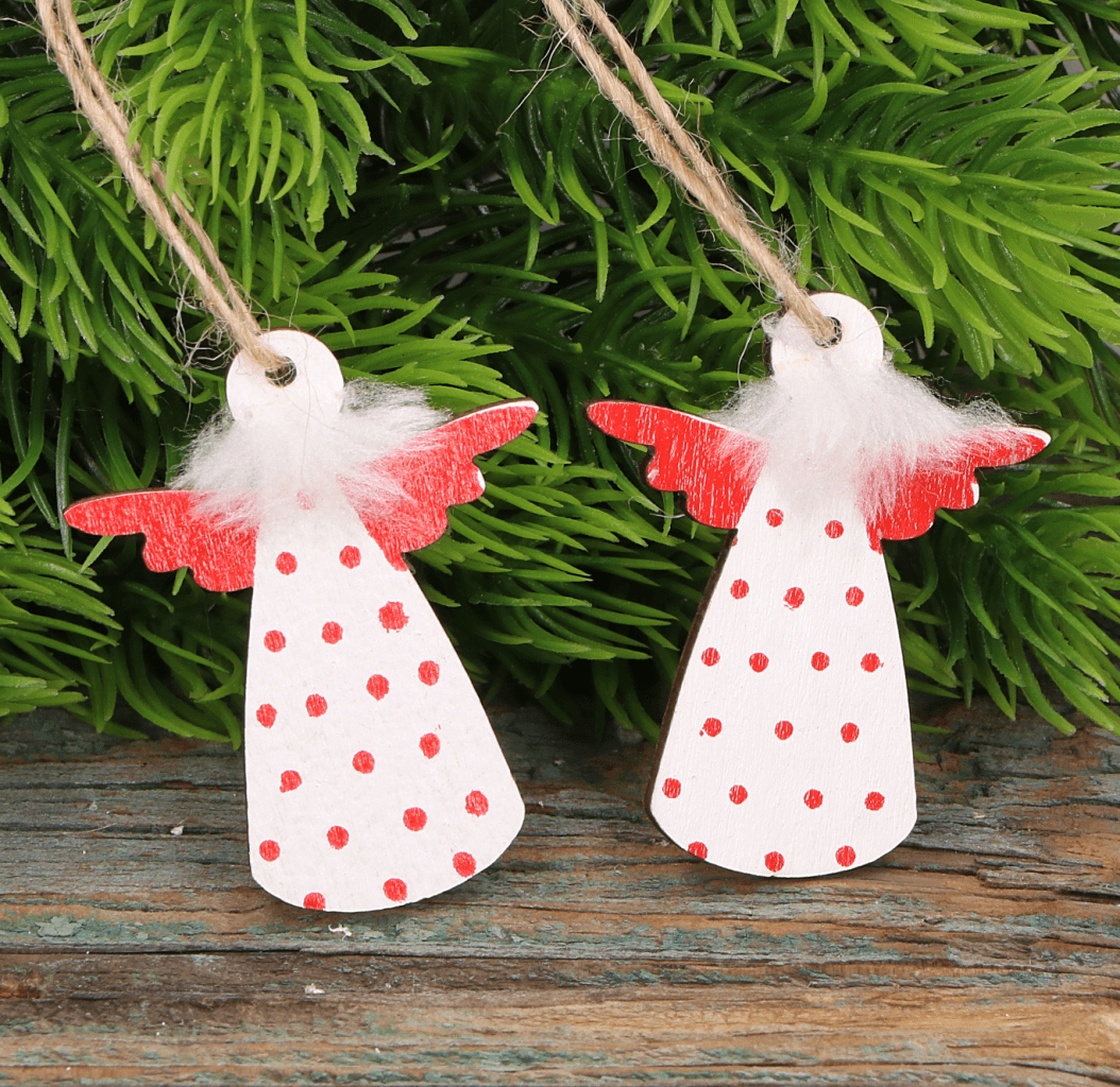 Zawieszki drewniane aniołki białe w czerwone kropki 4 cm