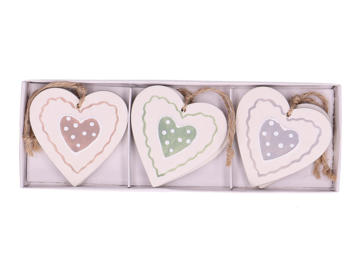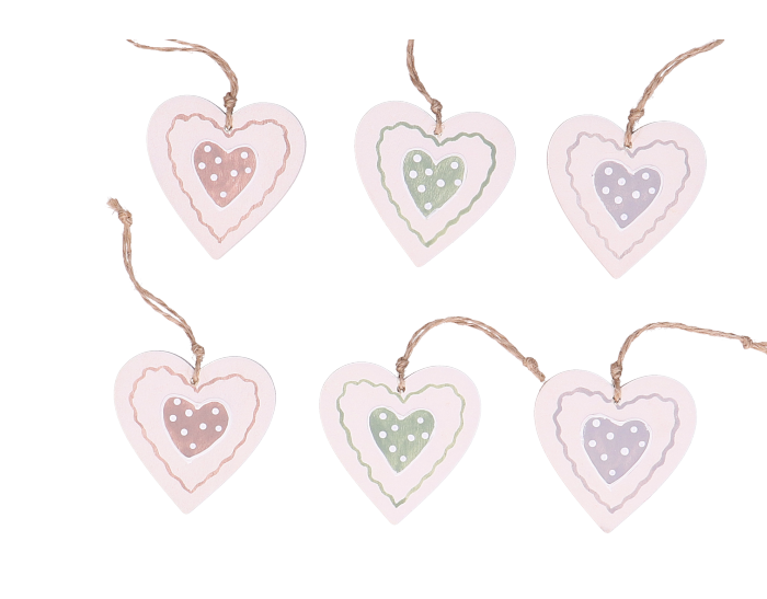 Zawieszki serca E-12-17HY55 ZESTAW 6 sztuk do dekoracji choinek i stroików bożonarodzeniowych.