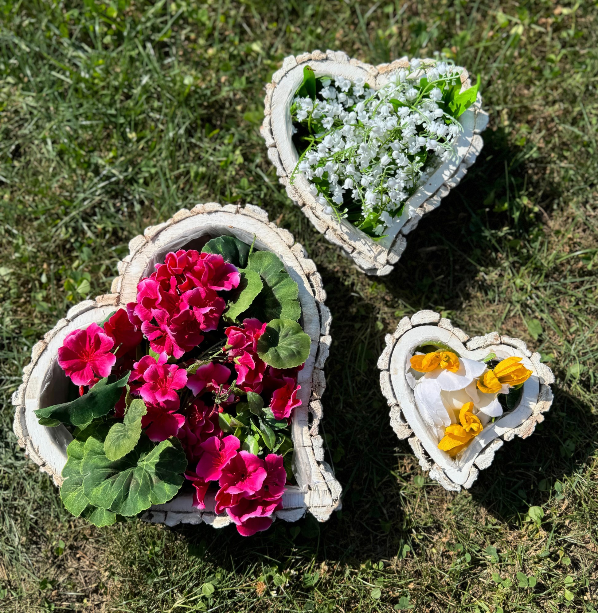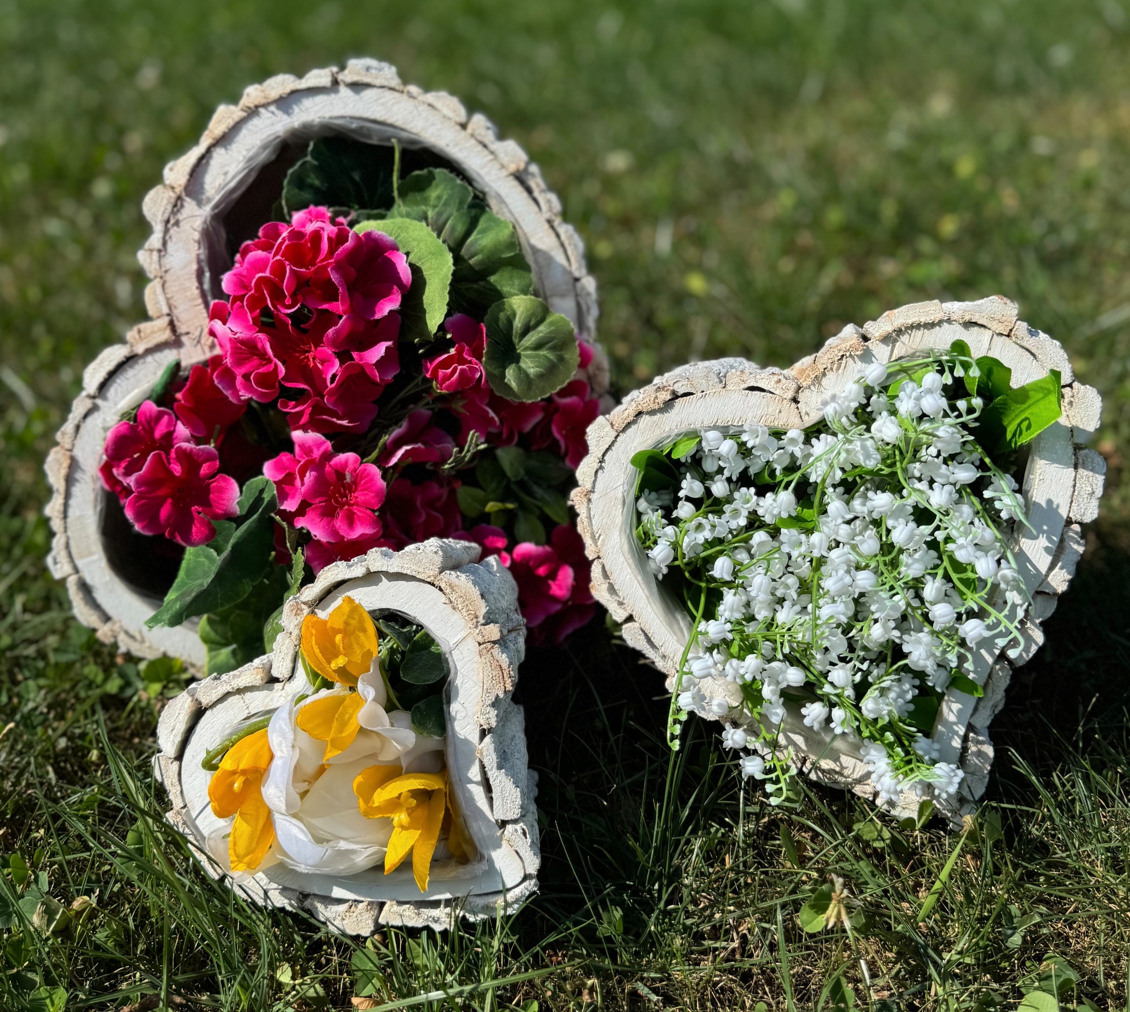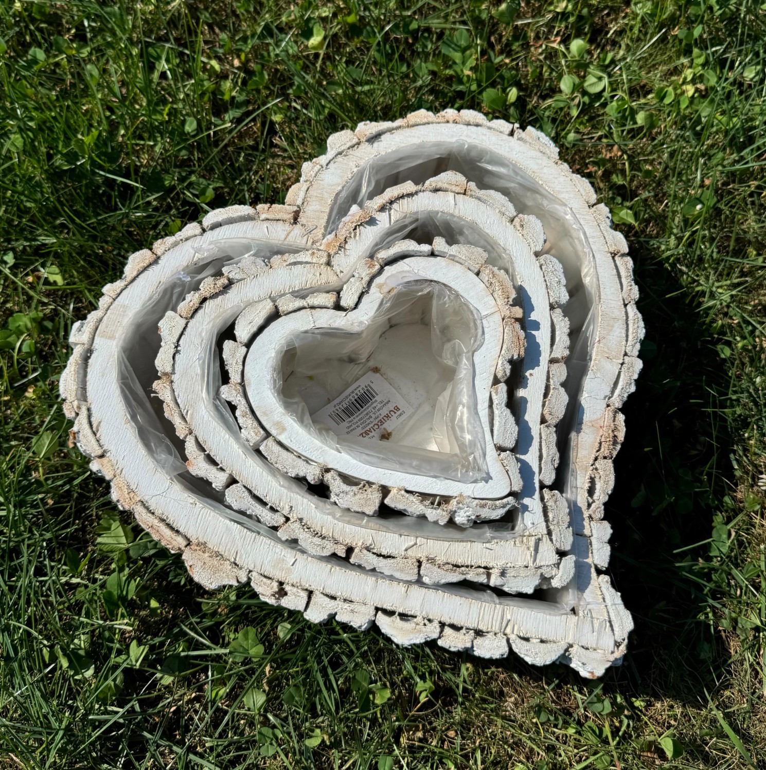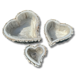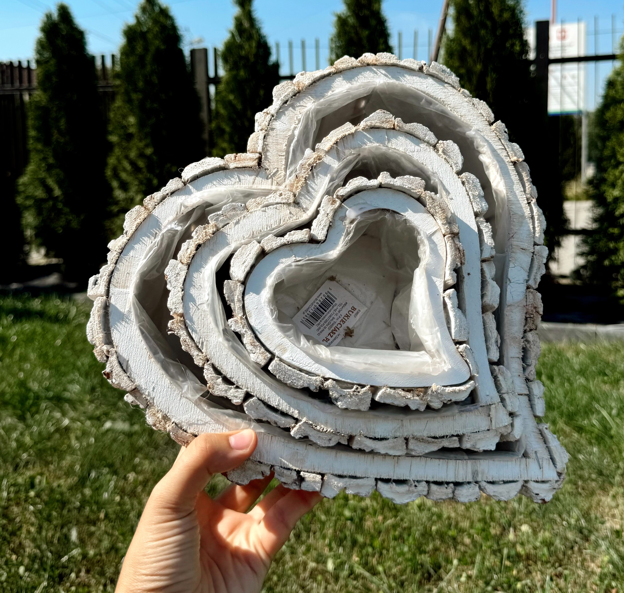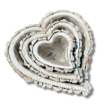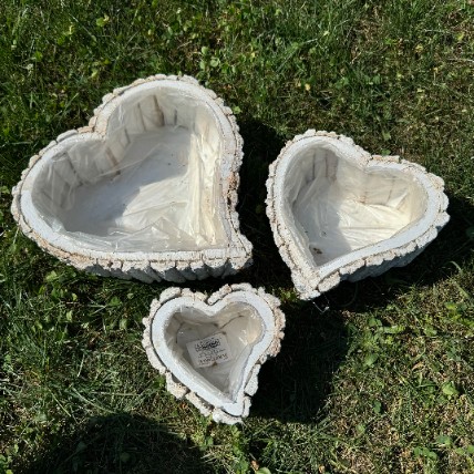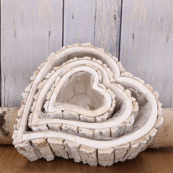 Zestaw białych rustykalnych osłonek w kształcie serca z kory 3szt. 9cm wys