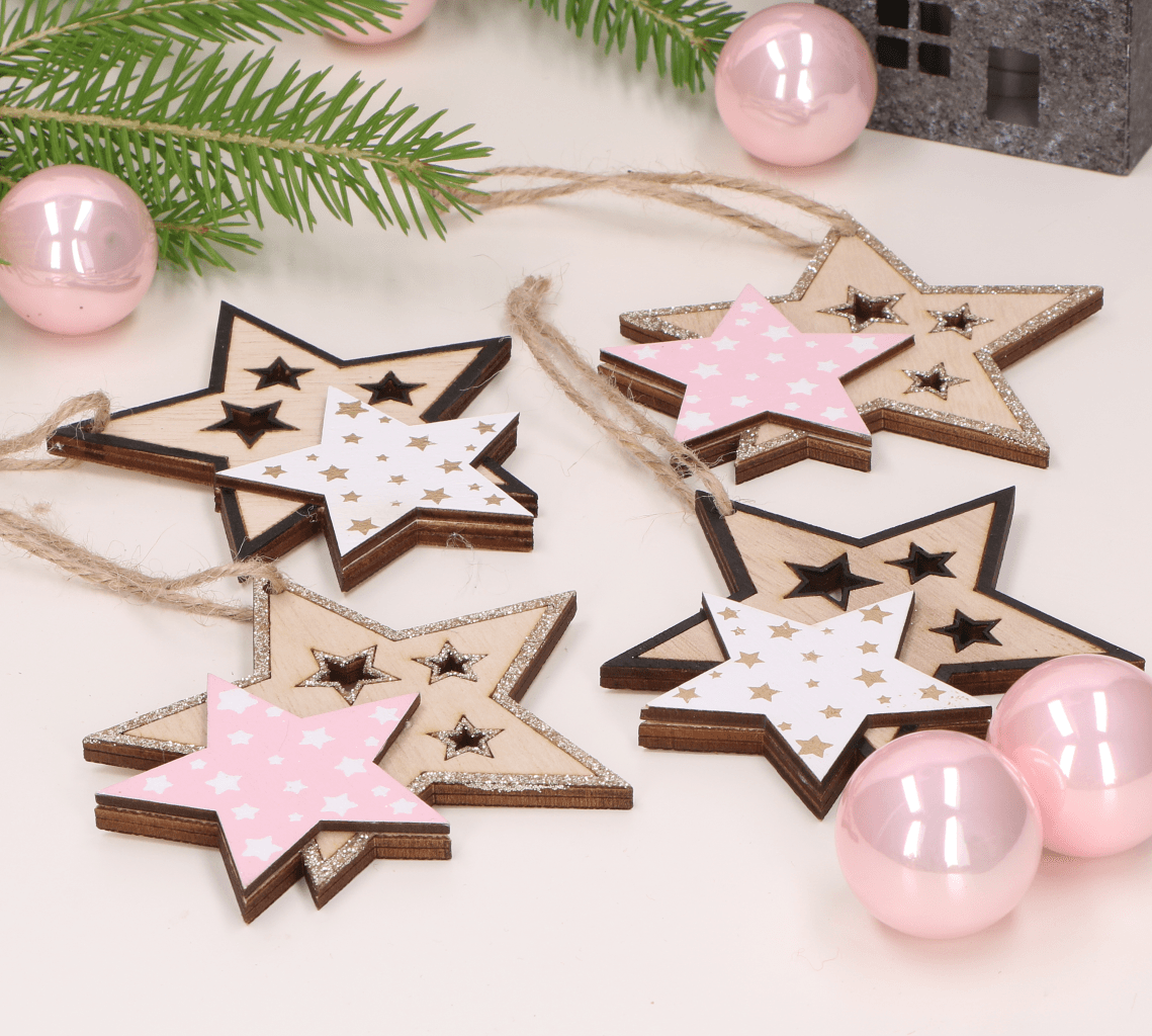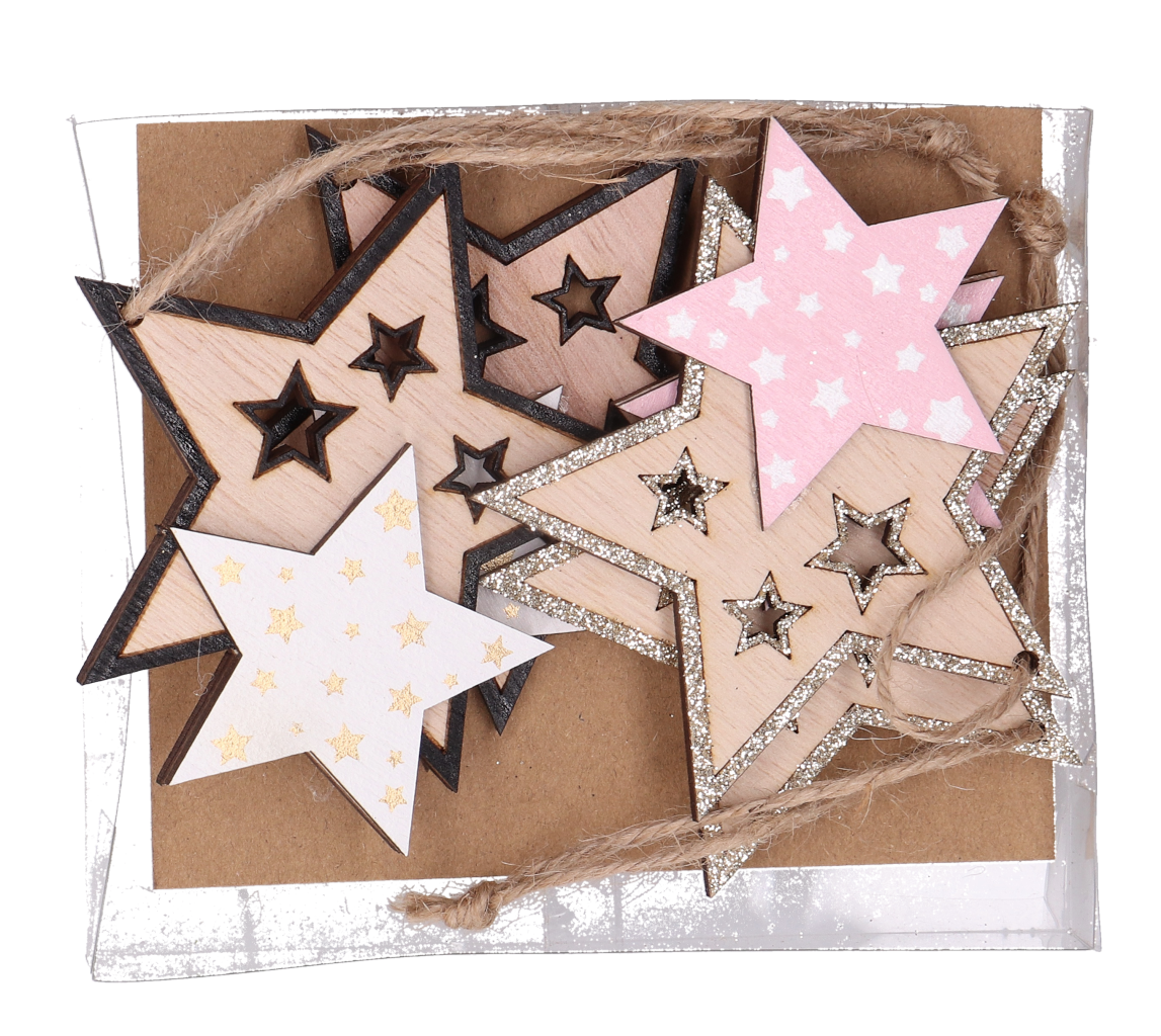 Zestaw zawieszek drewnianych gwiazdki 4szt