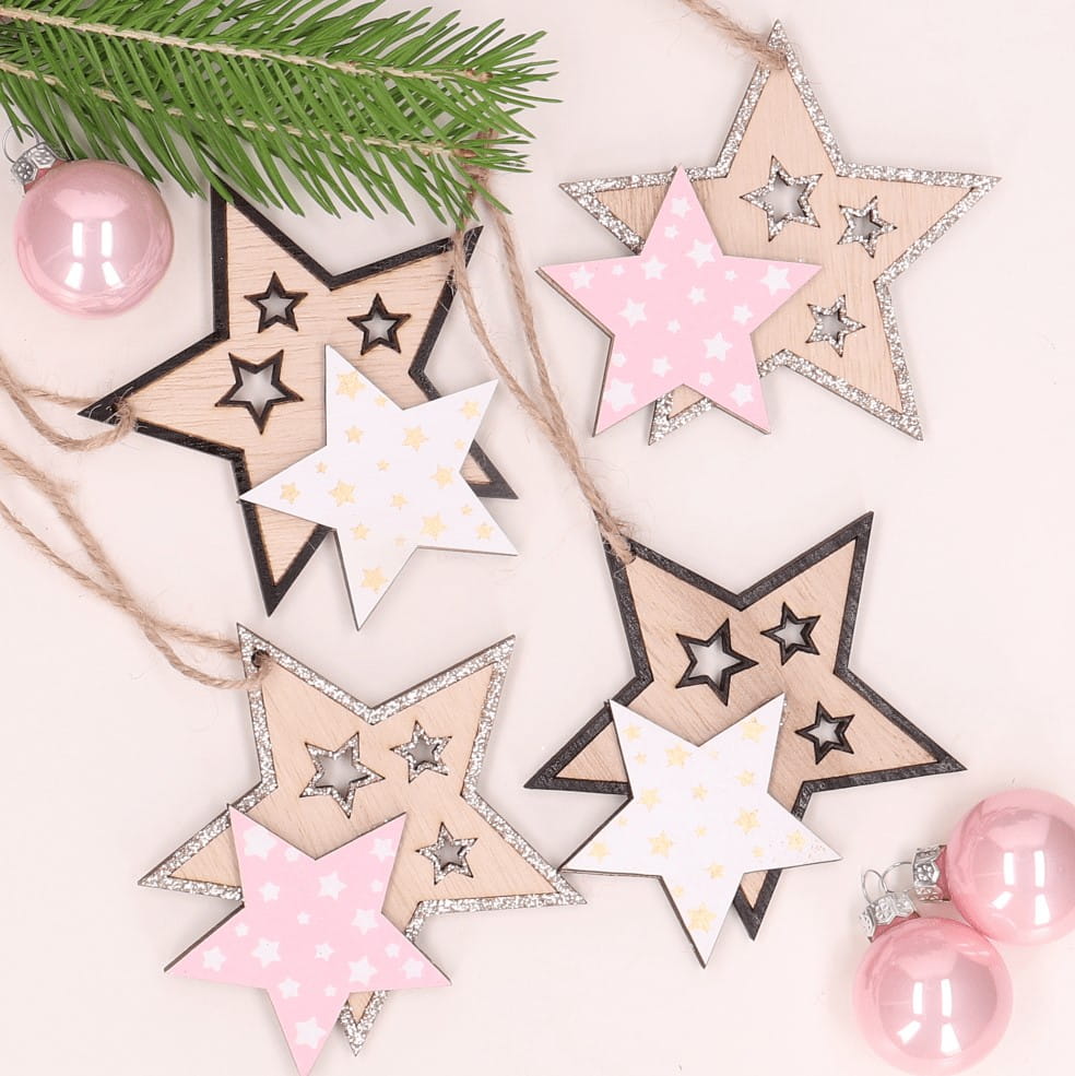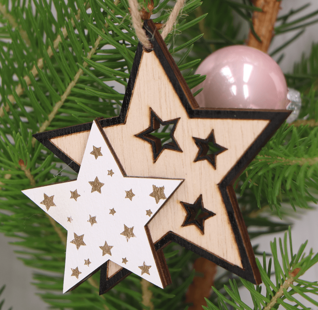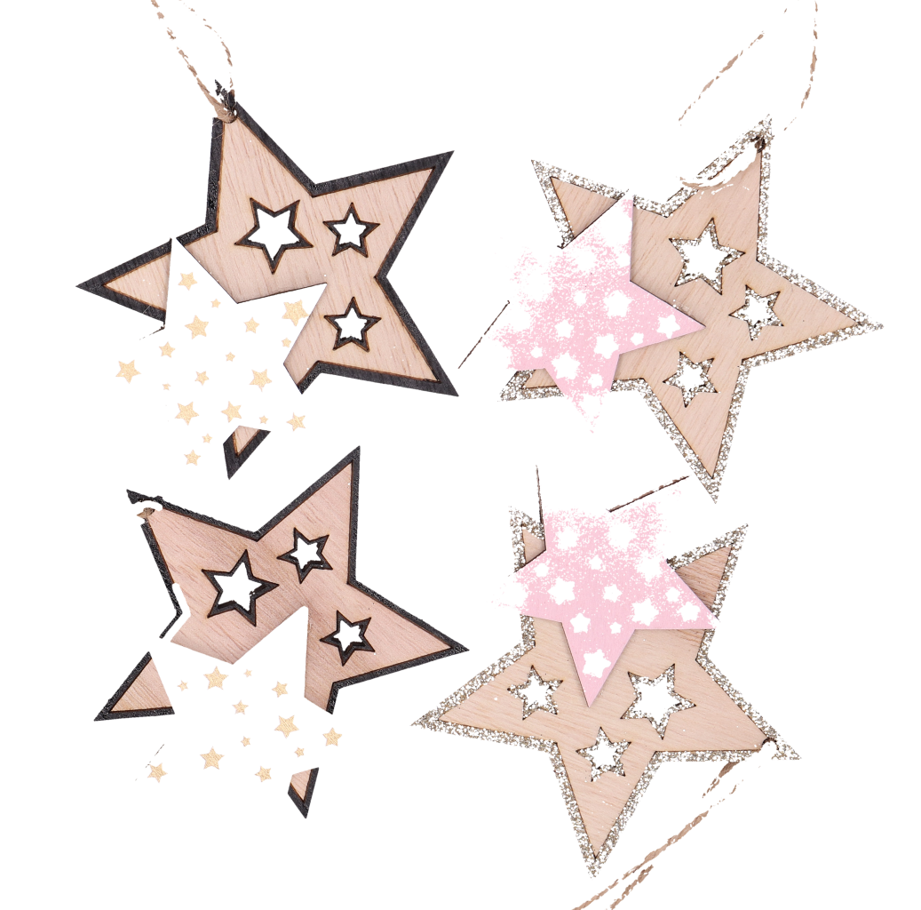 Drewniane zawieszki w kształcie podwójnej gwiazdki skomponują się z innymi ozdobami na twojej choince. Radosne wzory sprawią, że każde spojrzenie na choinkę będzie wywoływać w nas ciepłe wspomnienia z beztroskiego dzieciństwa. Zawieszki te idealnie sprawdzą się również w domach w których są małe dzieci, ponieważ nawet kiedy mali rozrabiacy zrzucą je z choinki, to one nie potłuką się i nikogo nie skaleczą.